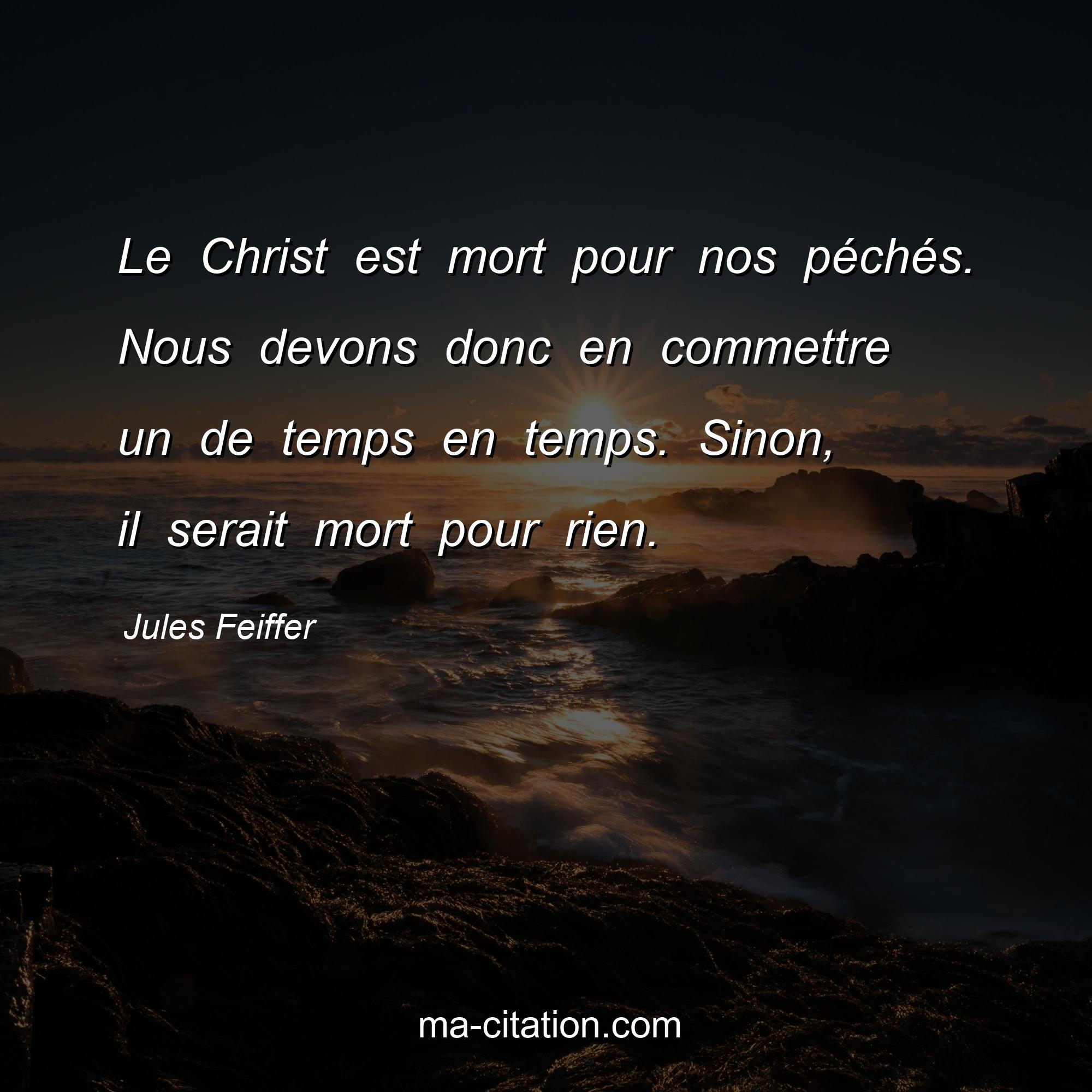 Citation sur la vie de Jules Feiffer :Le Christ est mort pour nos péchés. Nous devons donc en commettre un de temps en temps. Sinon, il serait mort pour rien.