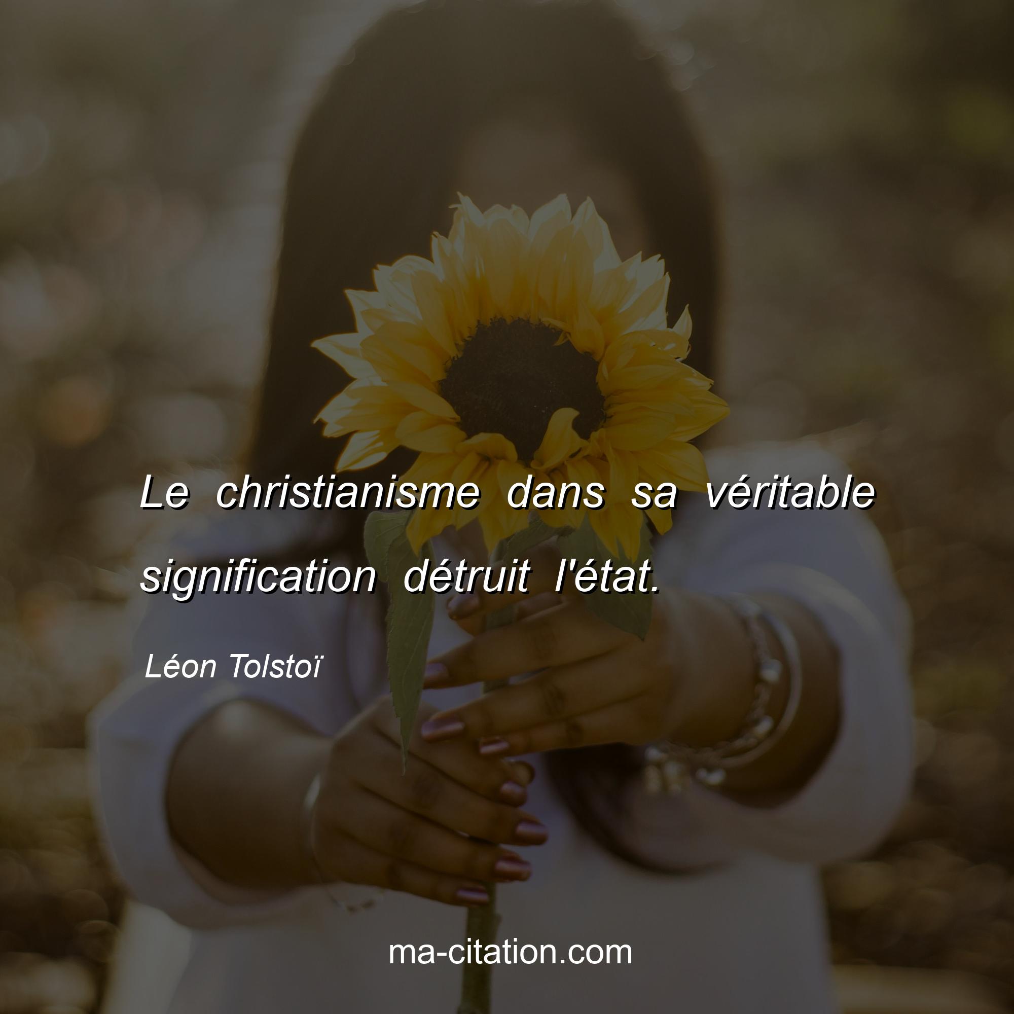 Citation sur la vie de Léon Tolstoï :Le christianisme dans sa véritable signification détruit l'état.