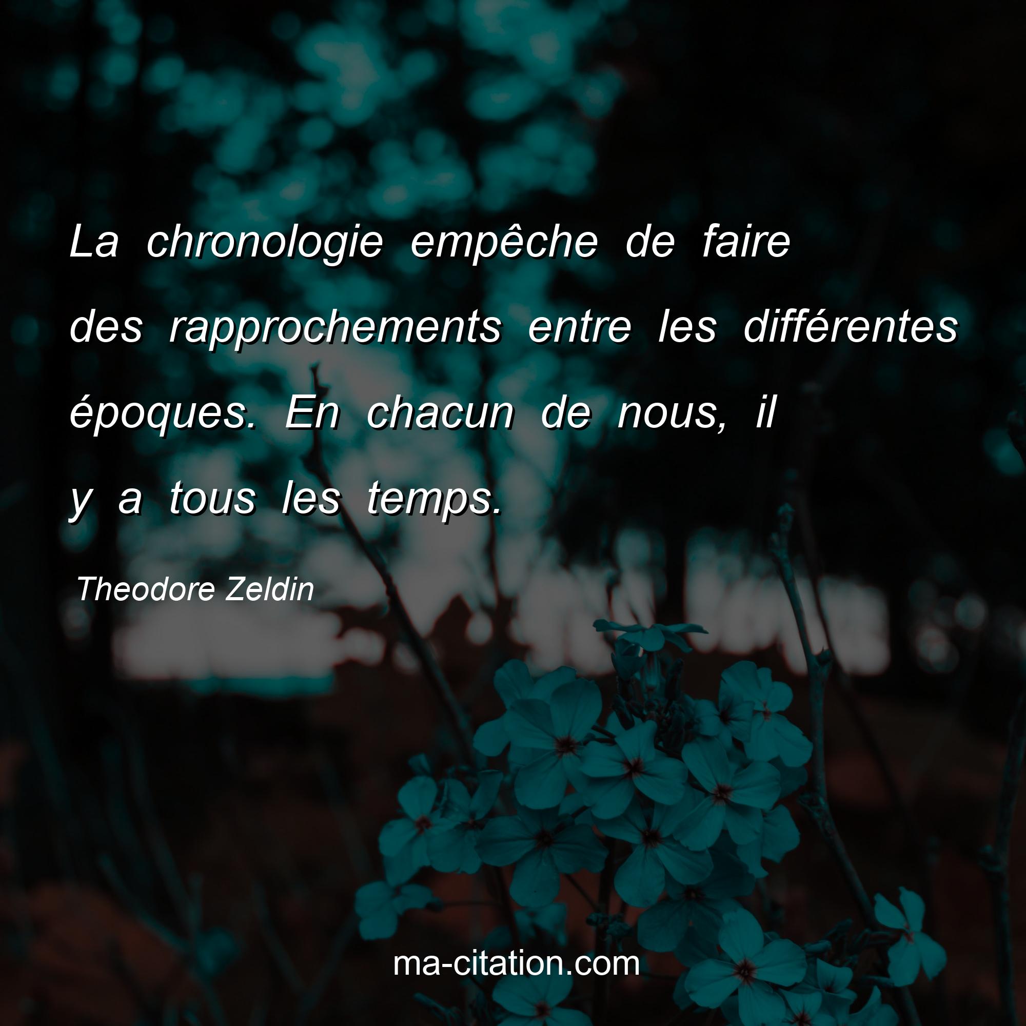 Citation sur la vie de Theodore Zeldin :La chronologie empêche de faire des rapprochements entre les différentes époques. En chacun de nous, il y a tous les temps.