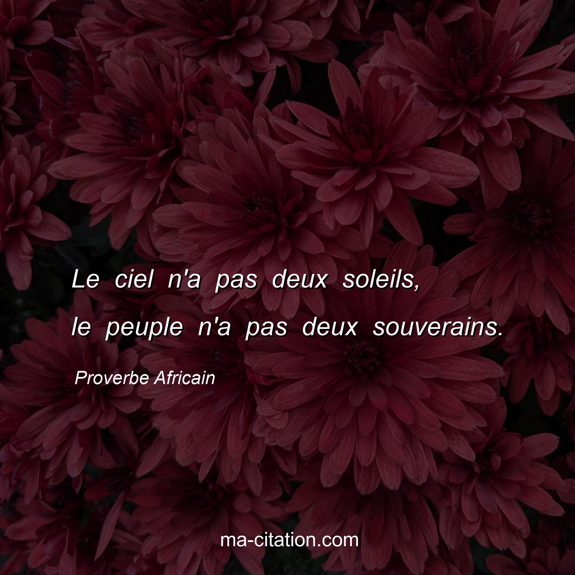 Proverbe Africain sur la vie :Le ciel n'a pas deux soleils, le peuple n'a pas deux souverains.