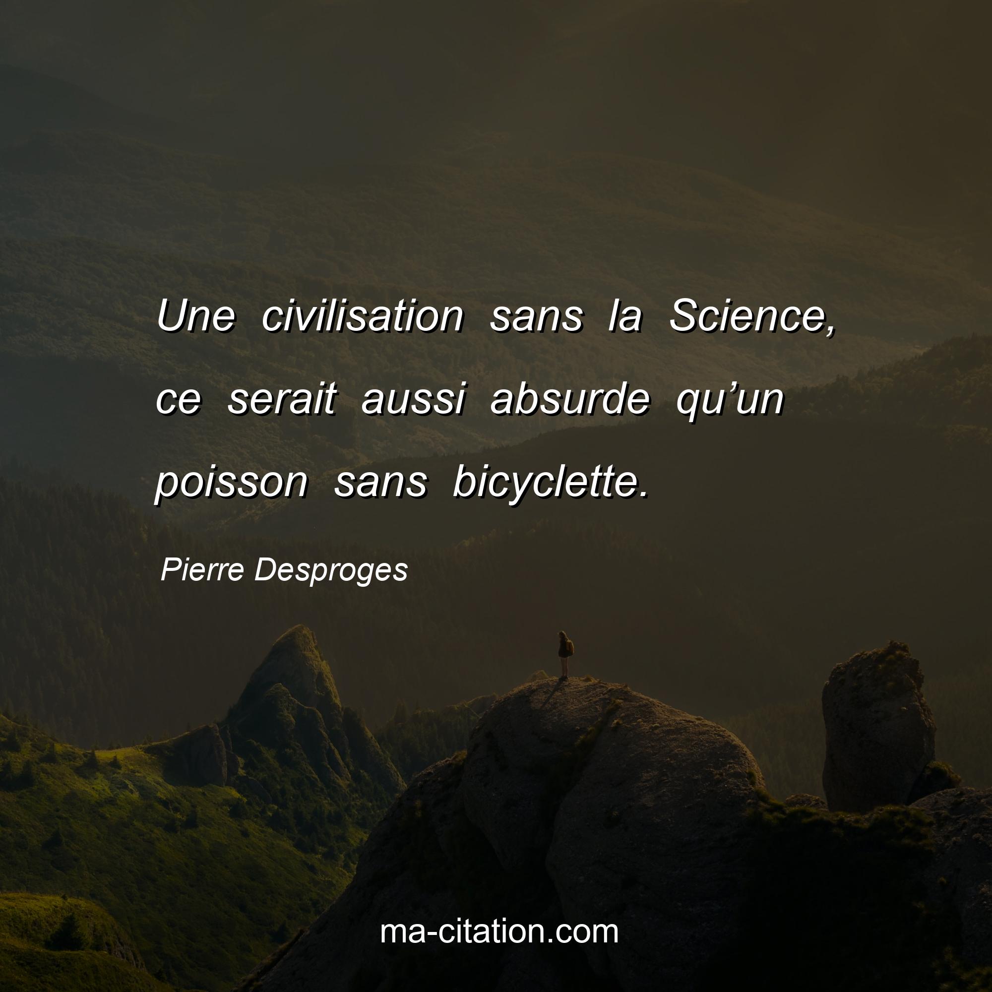 Citation sur la vie de Pierre Desproges :Une civilisation sans la Science, ce serait aussi absurde qu’un poisson sans bicyclette.