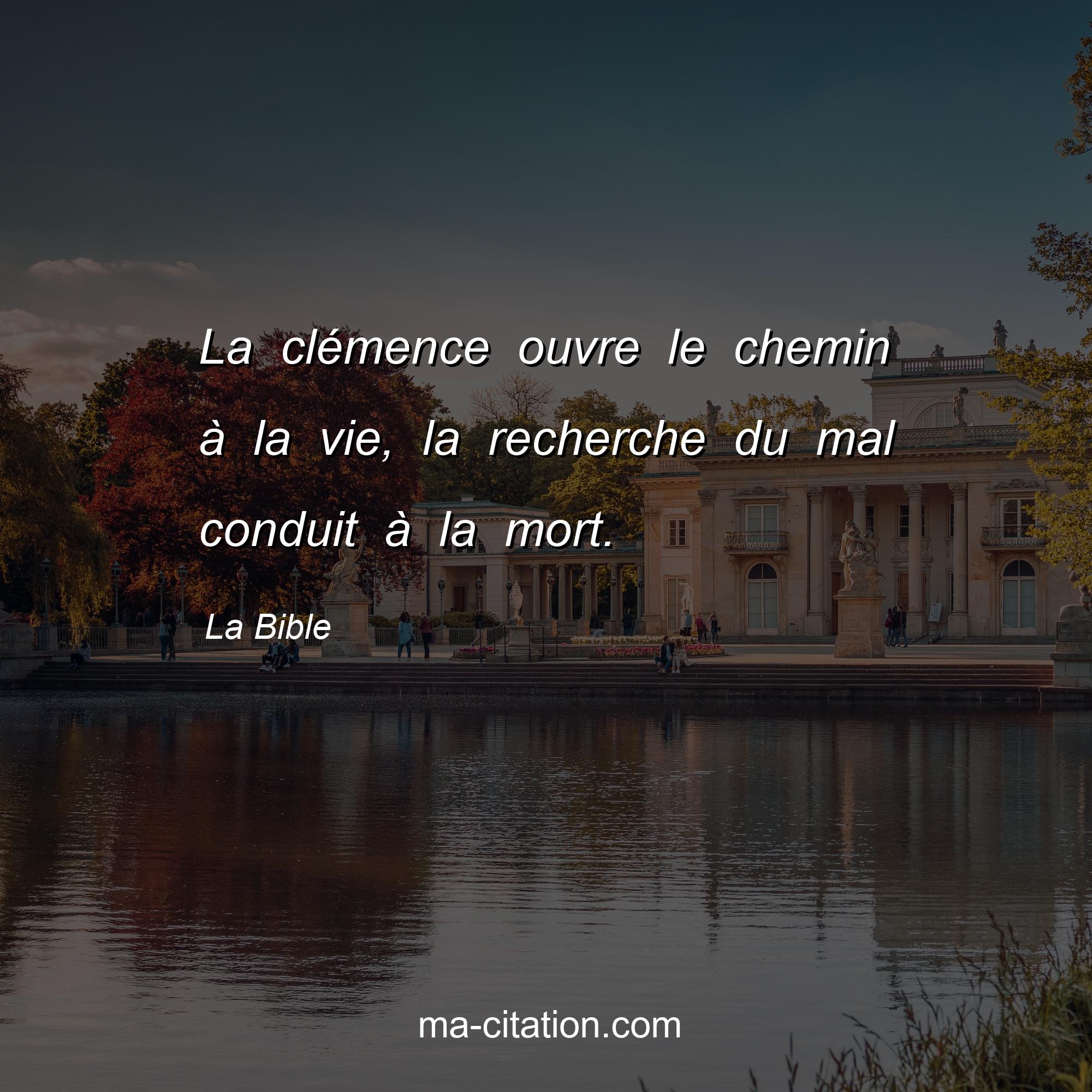 Citation sur la vie de La Bible :La clémence ouvre le chemin à la vie, la recherche du mal conduit à la mort.