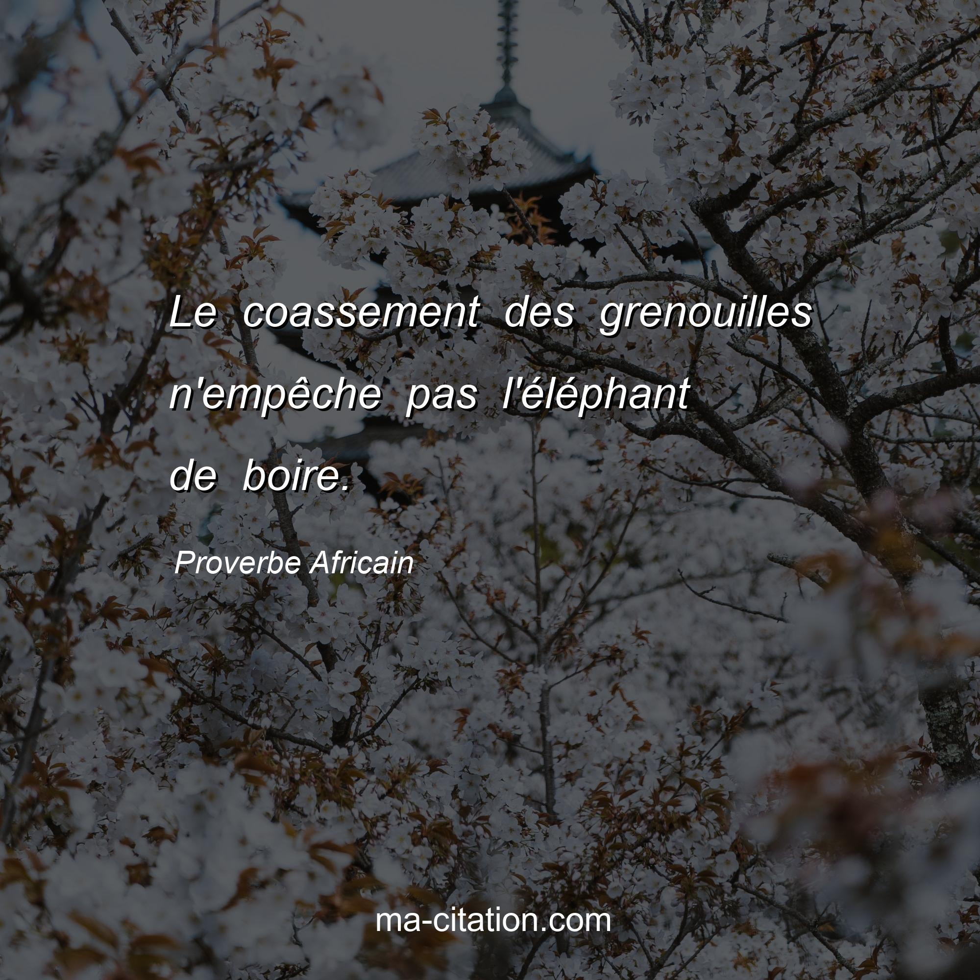 Proverbe Africain sur la vie :Le coassement des grenouilles n'empêche pas l'éléphant de boire.