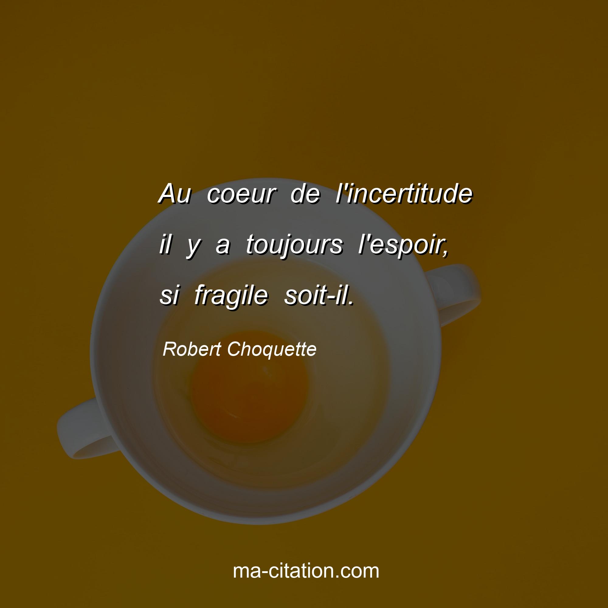 Robert Choquette est l'auteur de la citation sur la vie "Au coeur de l'incertitude il y a toujours l'espoir, si fragile soit-il.".