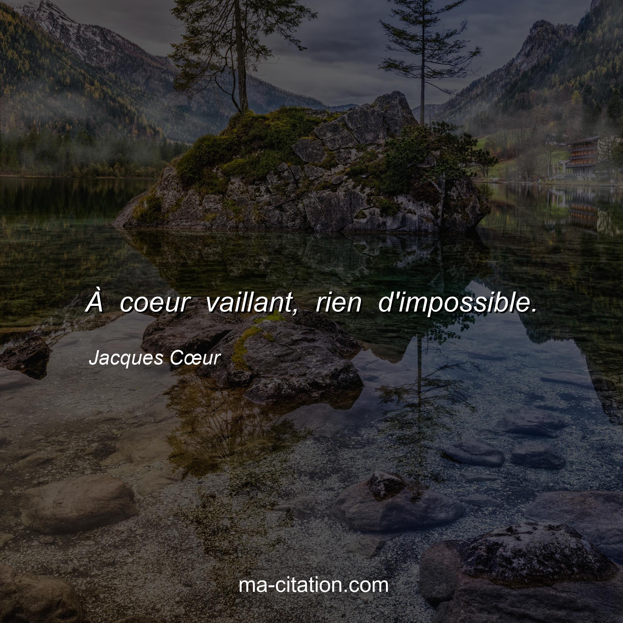 Jacques Cœur est l'auteur de la citation sur la vie "À coeur vaillant, rien d'impossible.".