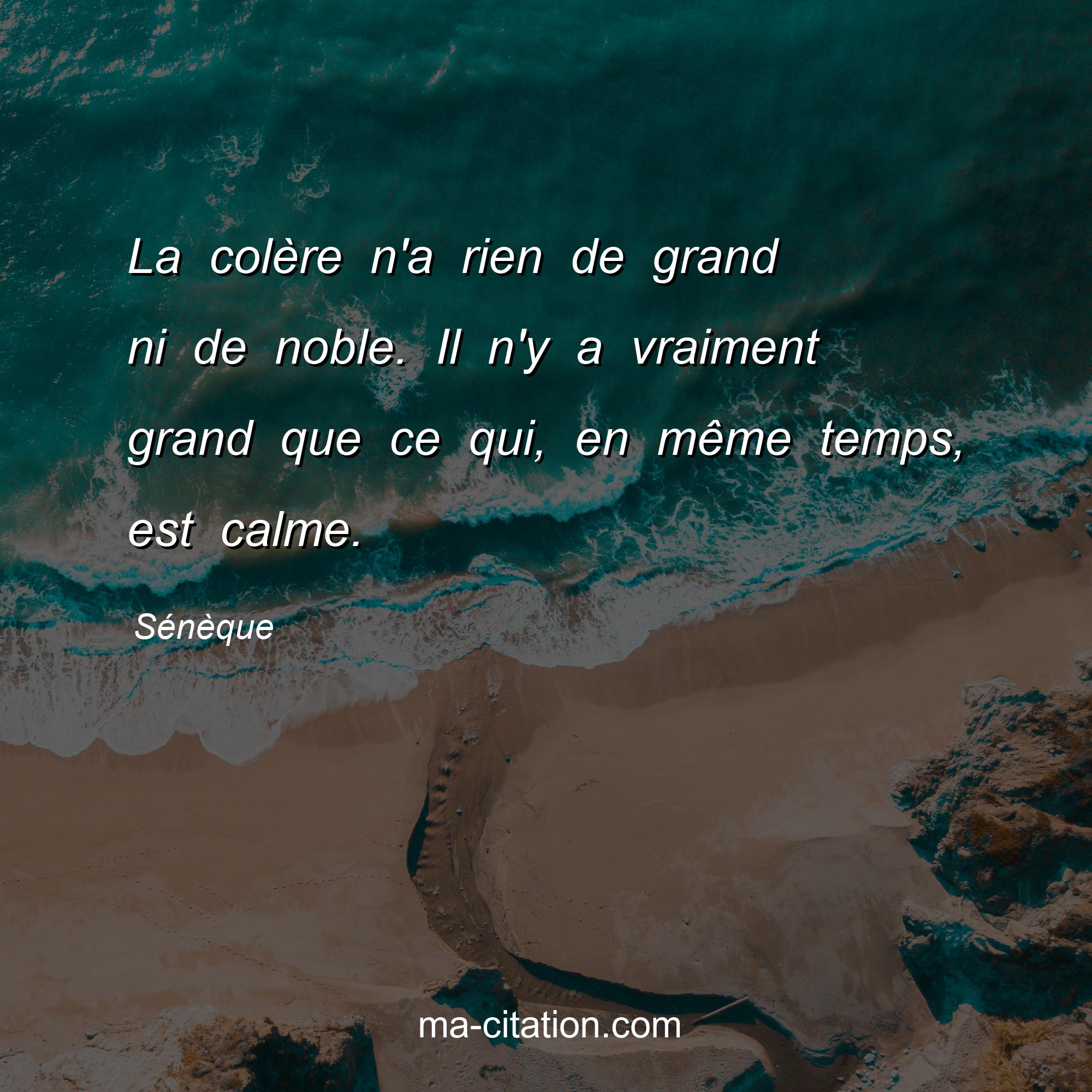 Citation sur la vie de Sénèque :La colère n'a rien de grand ni de noble. Il n'y a vraiment grand que ce qui, en même temps, est calme.