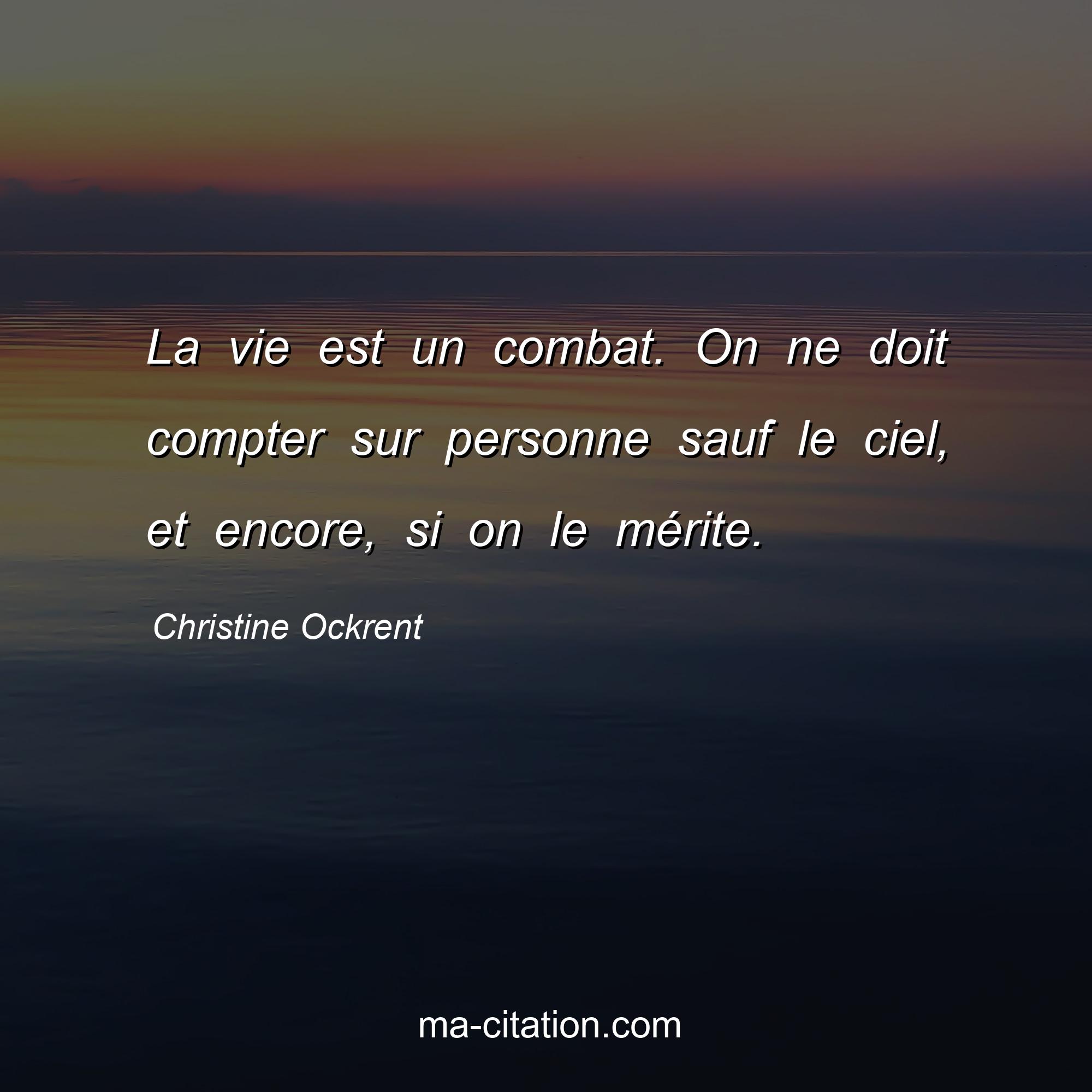 Citation sur la vie de Christine Ockrent :La vie est un combat. On ne doit compter sur personne sauf le ciel, et encore, si on le mérite.
