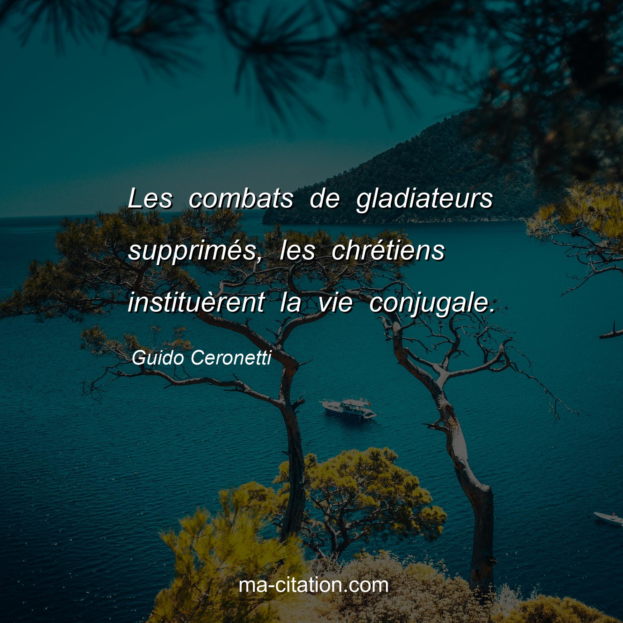 Guido Ceronetti est l'auteur de la citation sur la vie "Les combats de gladiateurs supprimés, les chrétiens instituèrent la vie conjugale.".