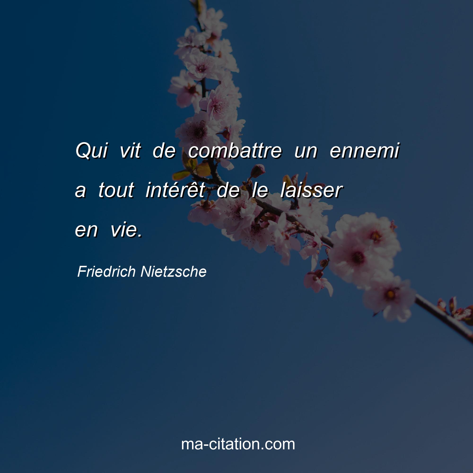 Citation sur la vie de Friedrich Nietzsche :Qui vit de combattre un ennemi a tout intérêt de le laisser en vie.