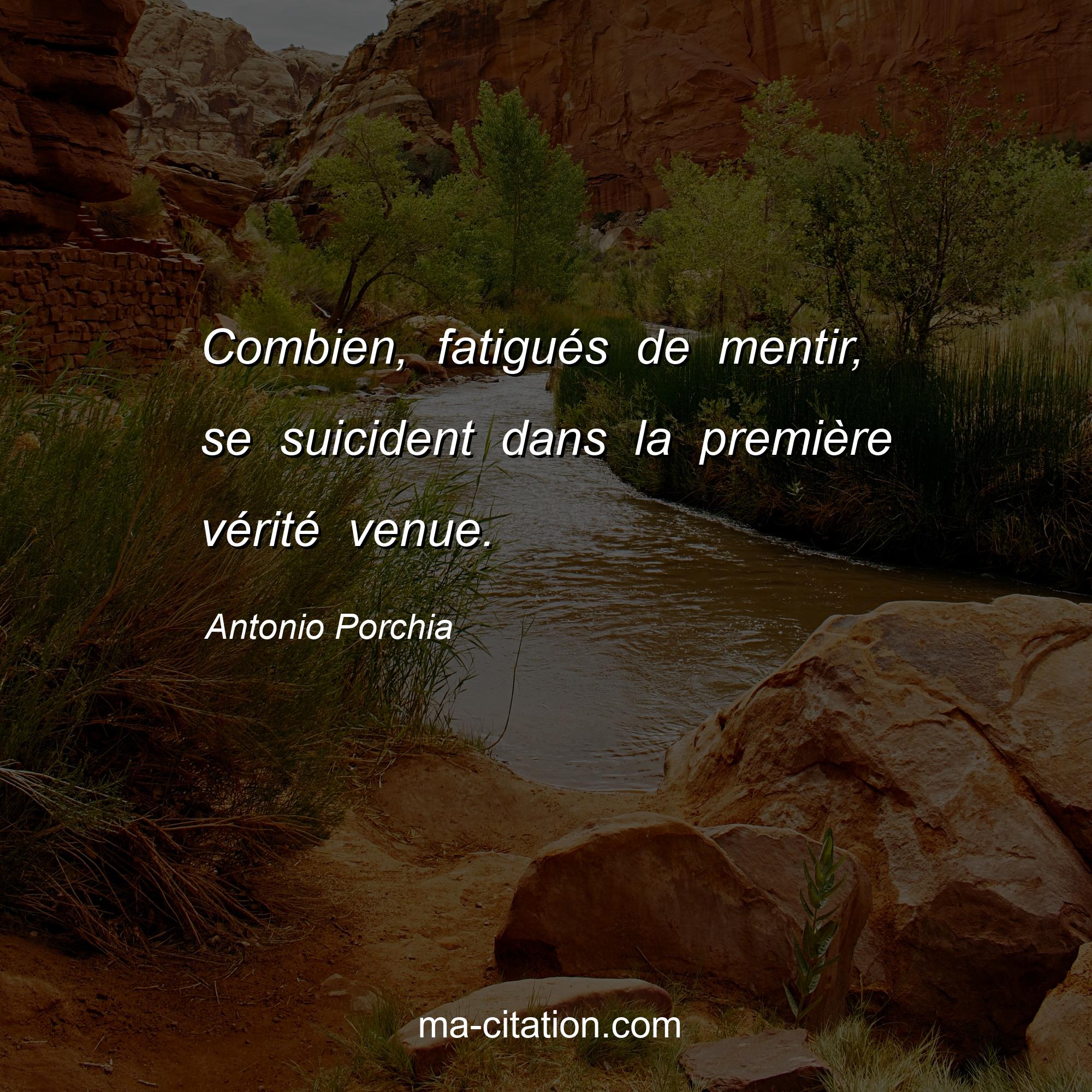 Citation sur la vie d'Antonio Porchia :Combien, fatigués de mentir, se suicident dans la première vérité venue.