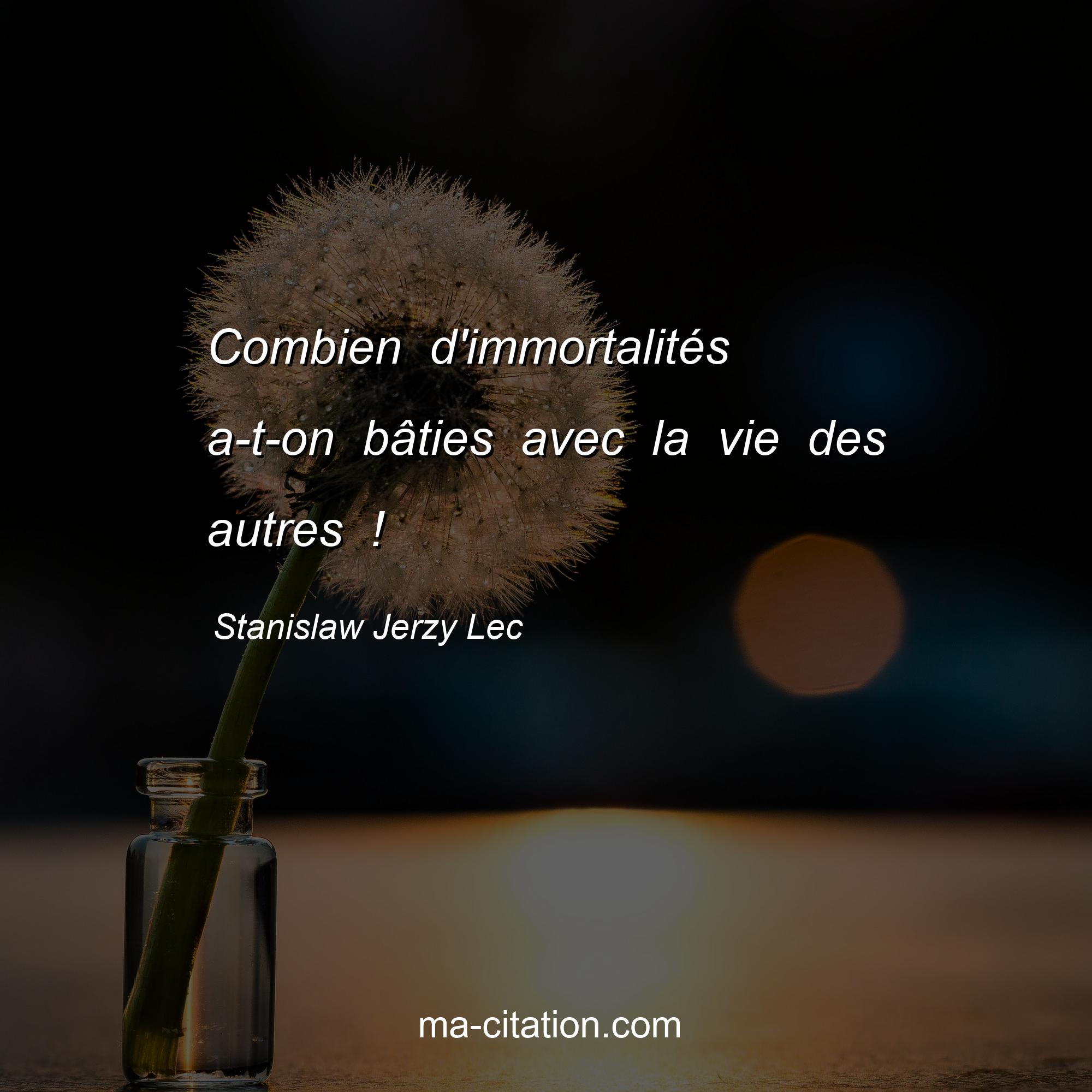 Citation sur la vie de Stanislaw Jerzy Lec :Combien d'immortalités a-t-on bâties avec la vie des autres !