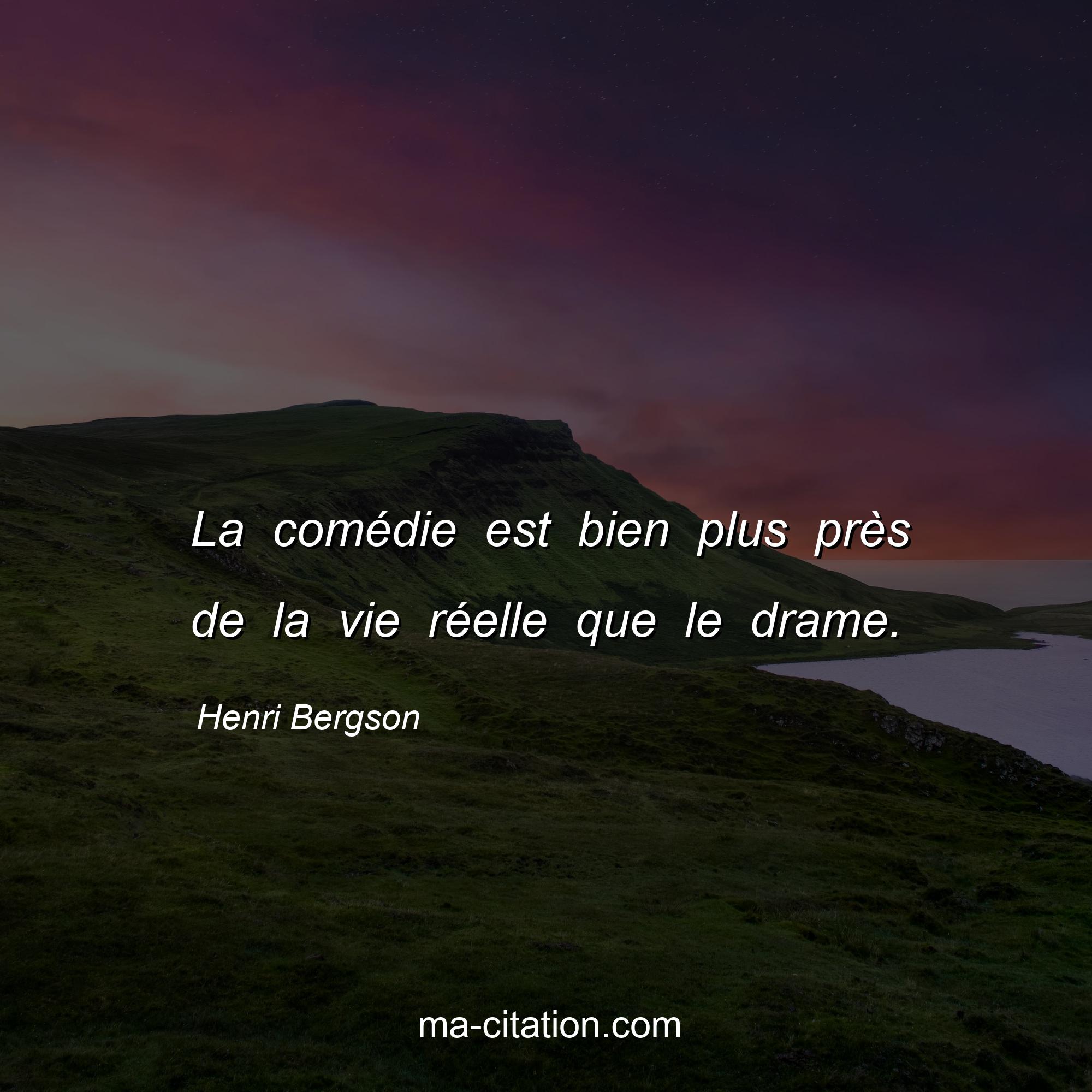 Henri Bergson est l'auteur de la citation sur la vie "La comédie est bien plus près de la vie réelle que le drame.".