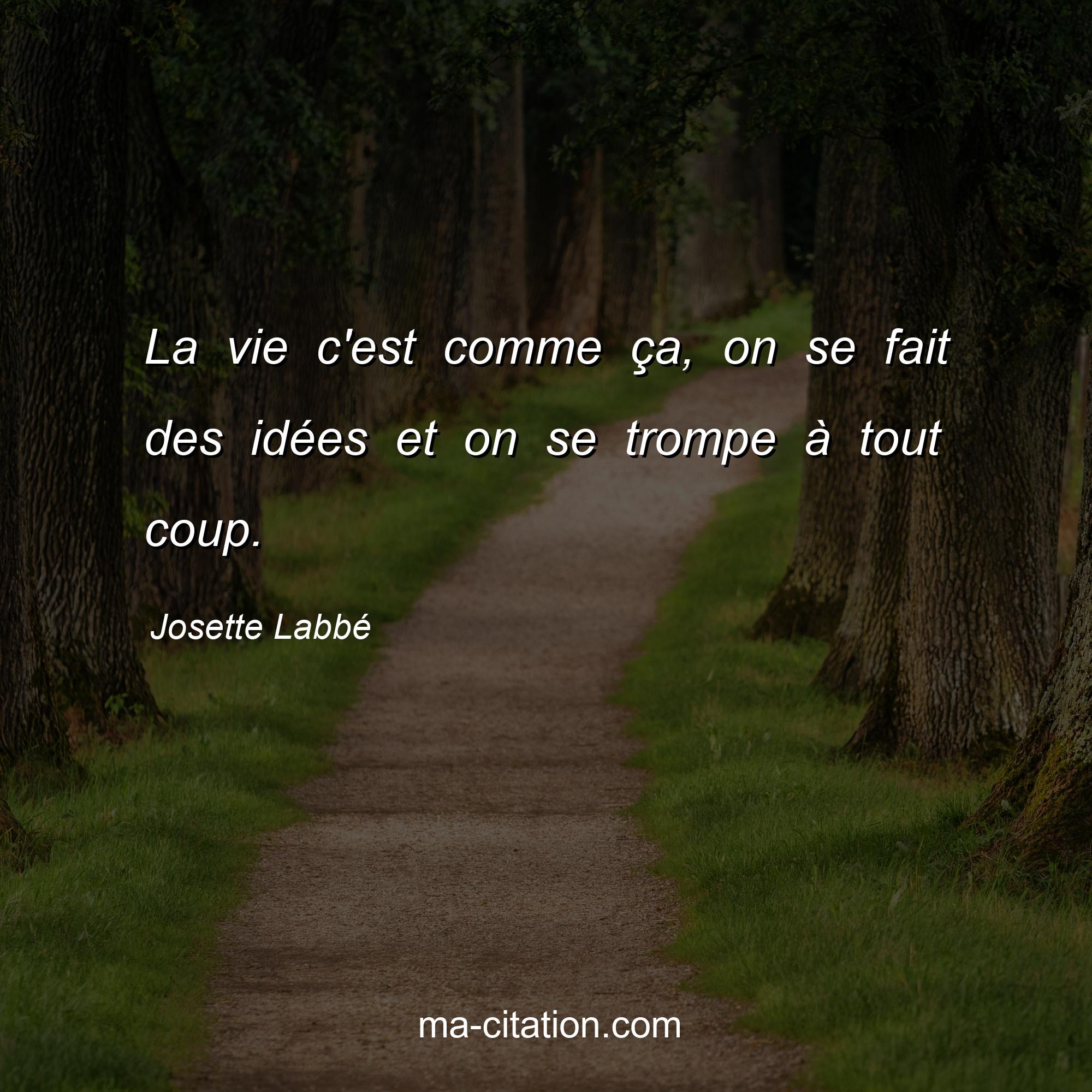 Josette Labbé est l'auteur de la citation sur la vie "La vie c'est comme ça, on se fait des idées et on se trompe à tout coup.".