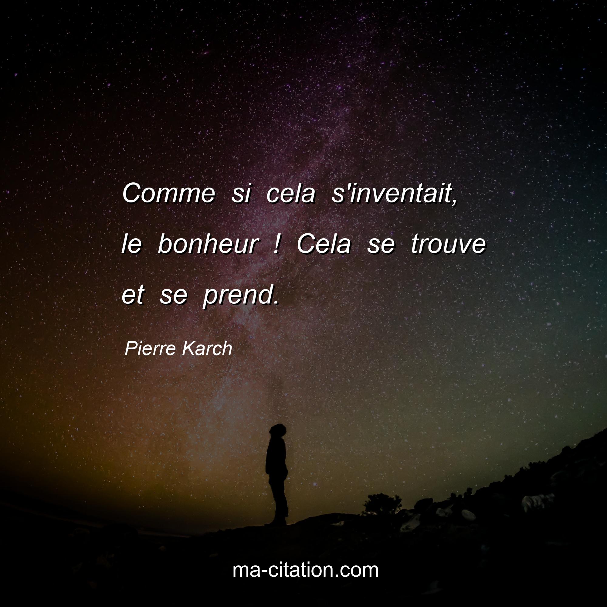 Pierre Karch est l'auteur de la citation sur la vie "Comme si cela s'inventait, le bonheur ! Cela se trouve et se prend.".