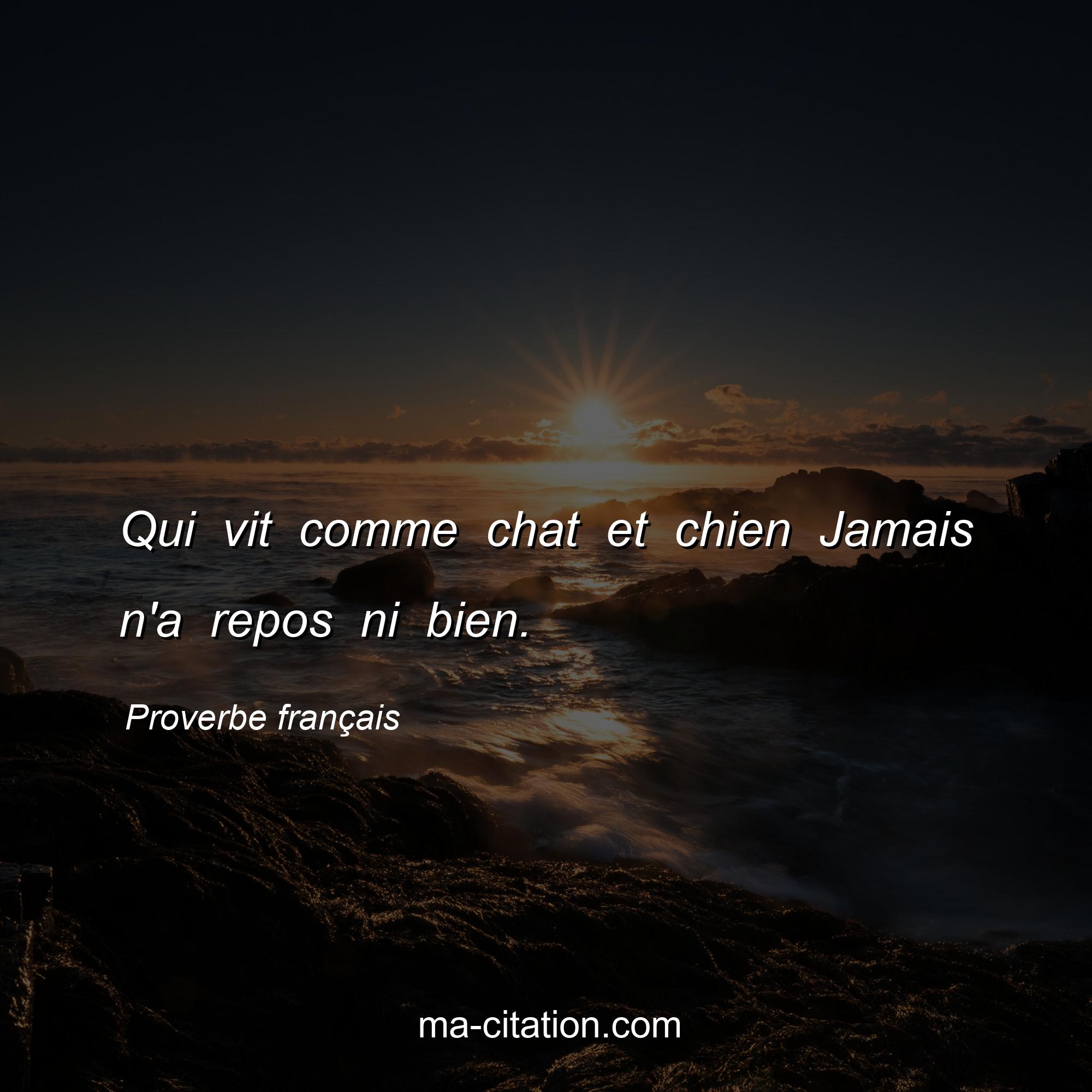 Proverbe français sur la vie :Qui vit comme chat et chien Jamais n'a repos ni bien.