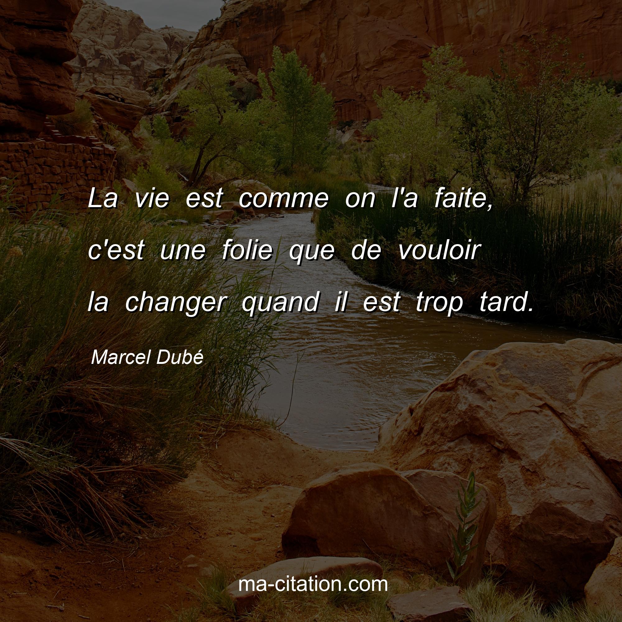 Marcel Dubé est l'auteur de la citation sur la vie "La vie est comme on l'a faite, c'est une folie que de vouloir la changer quand il est trop tard.".