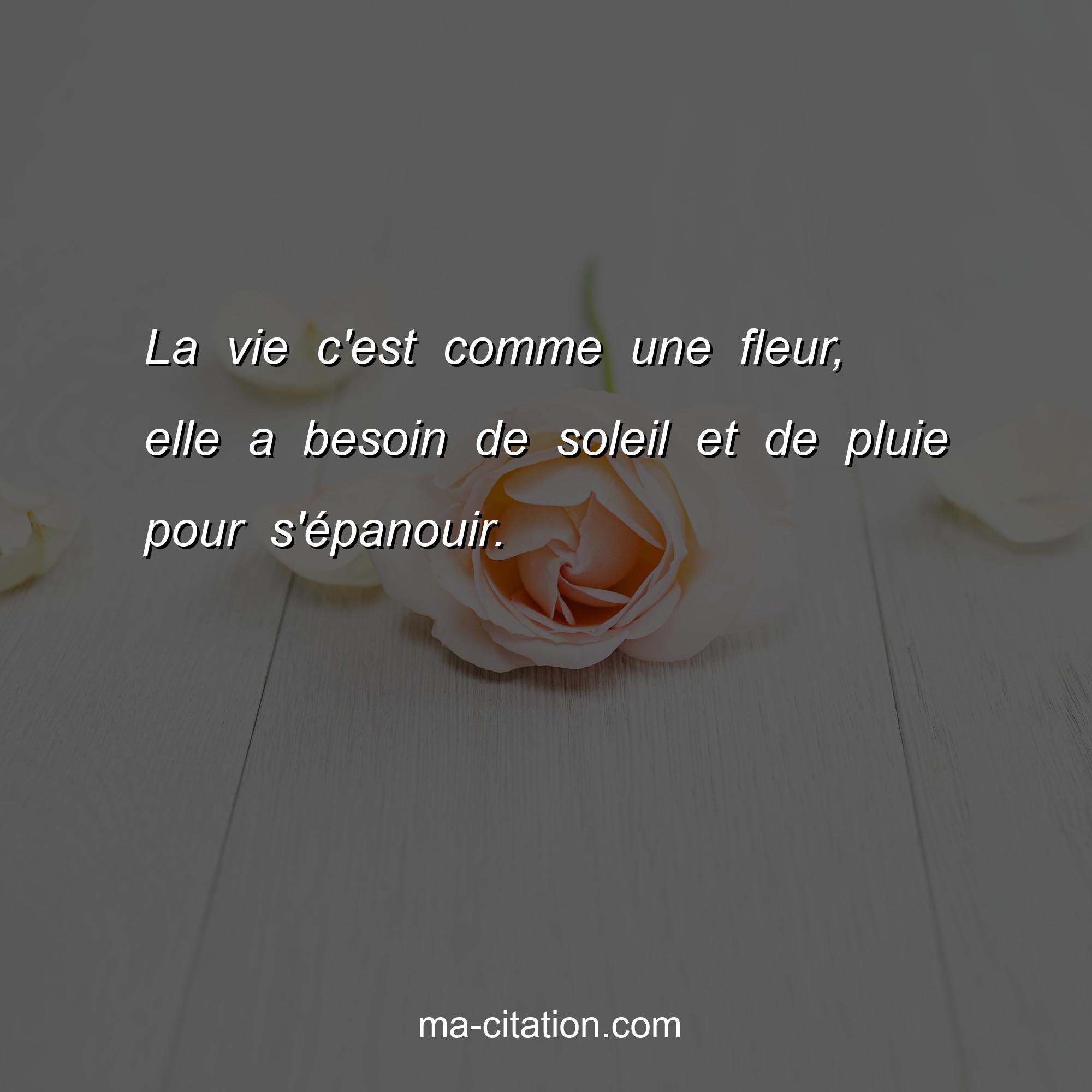 Citation sur la vie :La vie c'est comme une fleur, elle a besoin de soleil et de pluie pour s'épanouir.