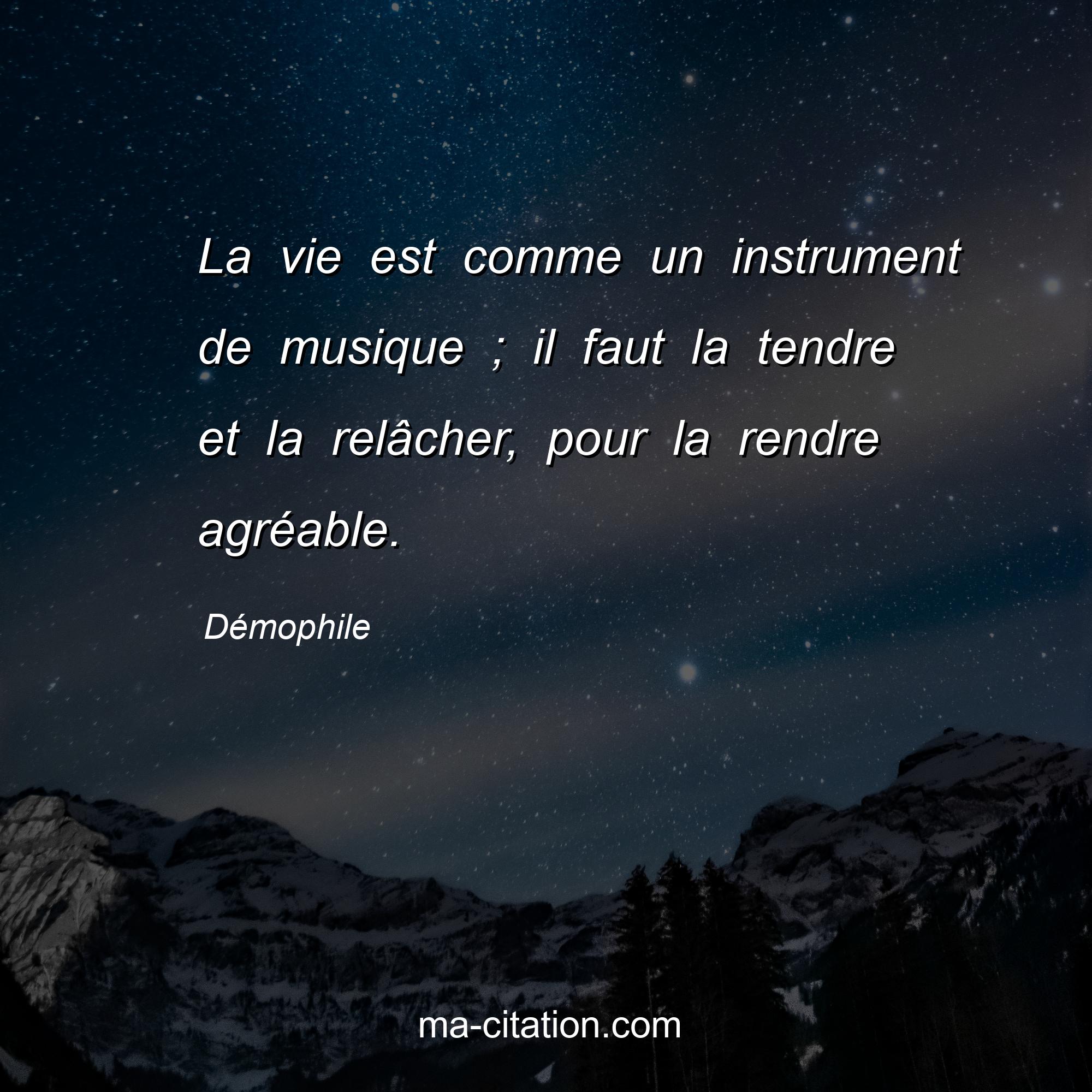Démophile est l'auteur de la citation sur la vie "La vie est comme un instrument de musique ; il faut la tendre et la relâcher, pour la rendre agréable.".
