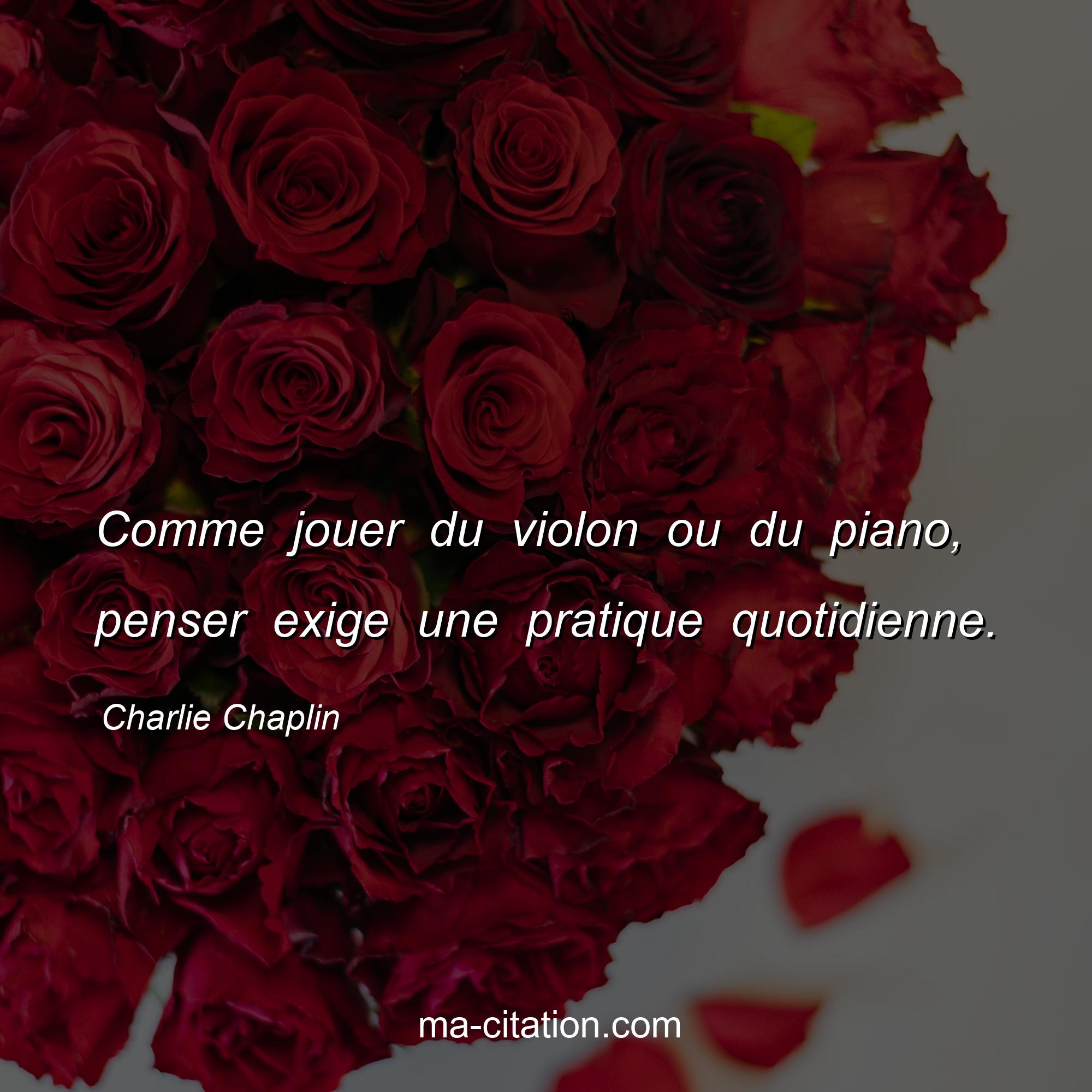 Citation sur la vie de Charlie Chaplin :Comme jouer du violon ou du piano, penser exige une pratique quotidienne.