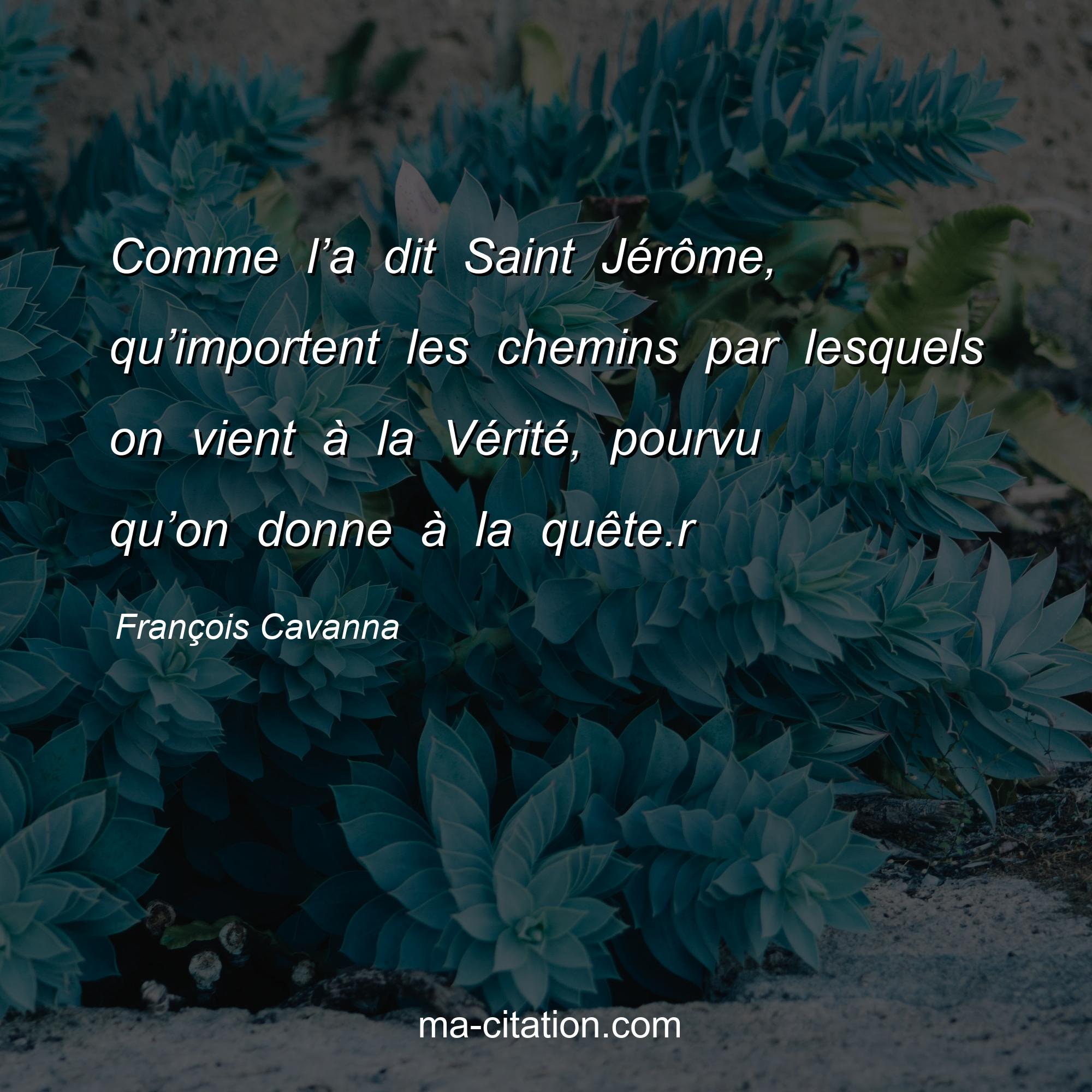 Citation sur la vie de François Cavanna :Comme l’a dit Saint Jérôme, qu’importent les chemins par lesquels on vient à la Vérité, pourvu qu’on donne à la quête.r