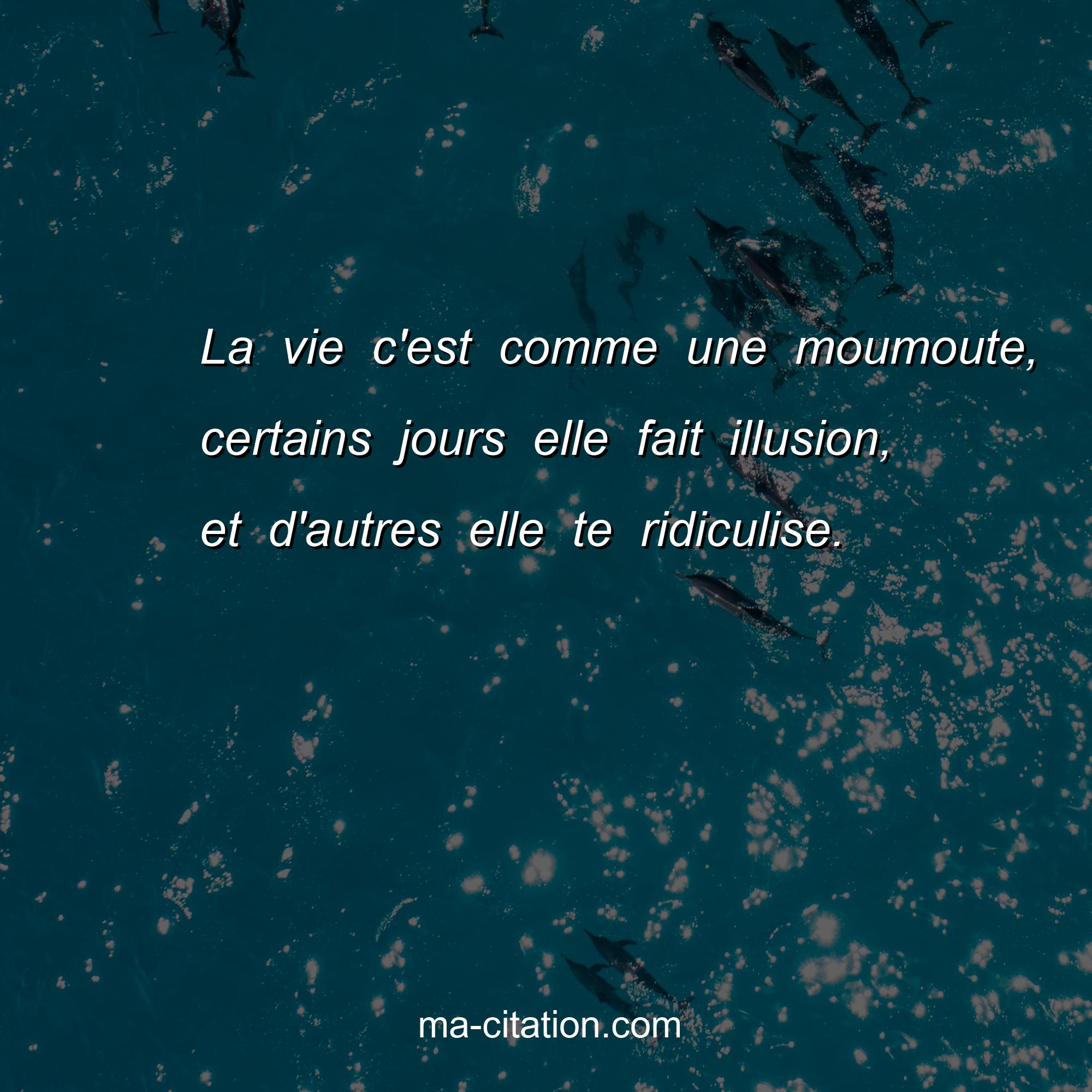 Citation sur la vie :La vie c'est comme une moumoute, certains jours elle fait illusion, et d'autres elle te ridiculise.