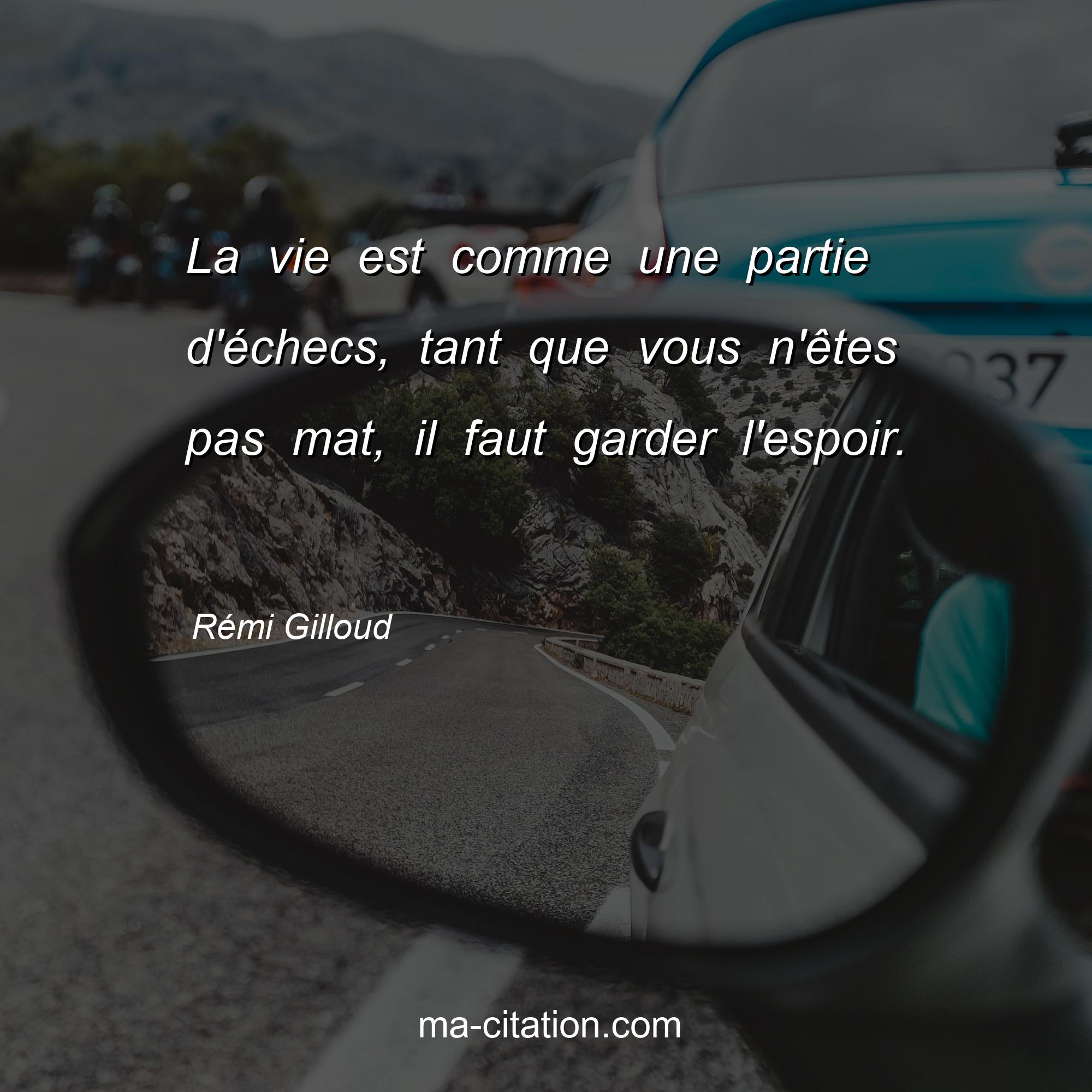Citation sur la vie de Rémi Gilloud :La vie est comme une partie d'échecs, tant que vous n'êtes pas mat, il faut garder l'espoir.