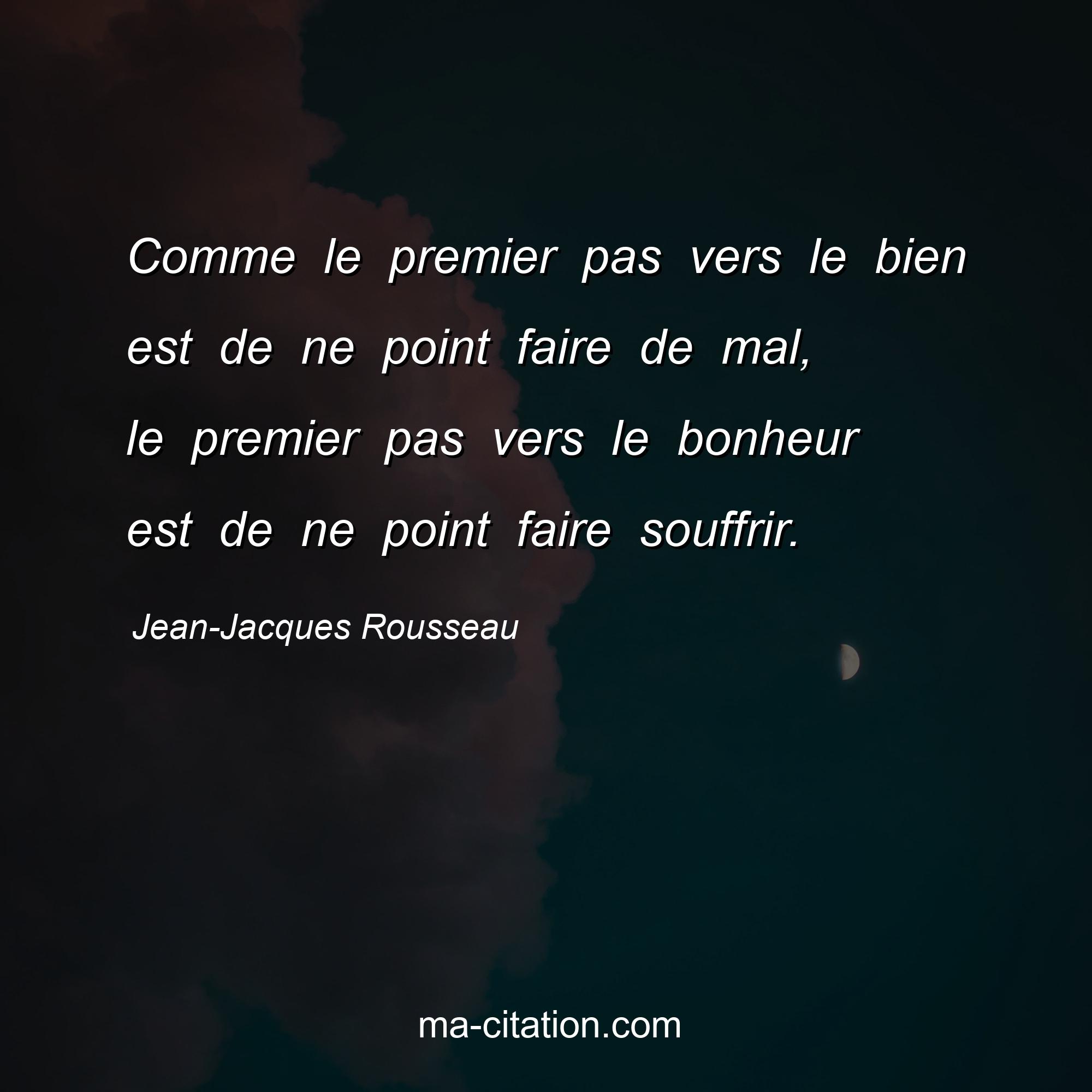 Citation sur la vie de Jean-Jacques Rousseau :Comme le premier pas vers le bien est de ne point faire de mal, le premier pas vers le bonheur est de ne point faire souffrir.
