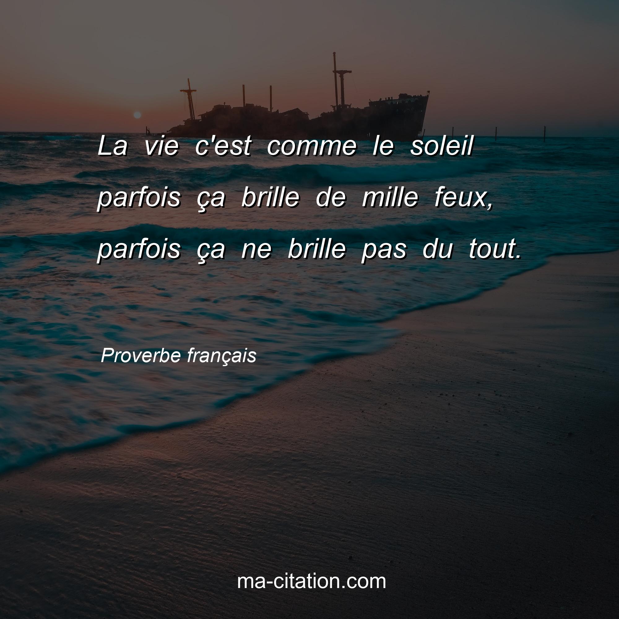 Proverbe français sur la vie :La vie c'est comme le soleil parfois ça brille de mille feux, parfois ça ne brille pas du tout.