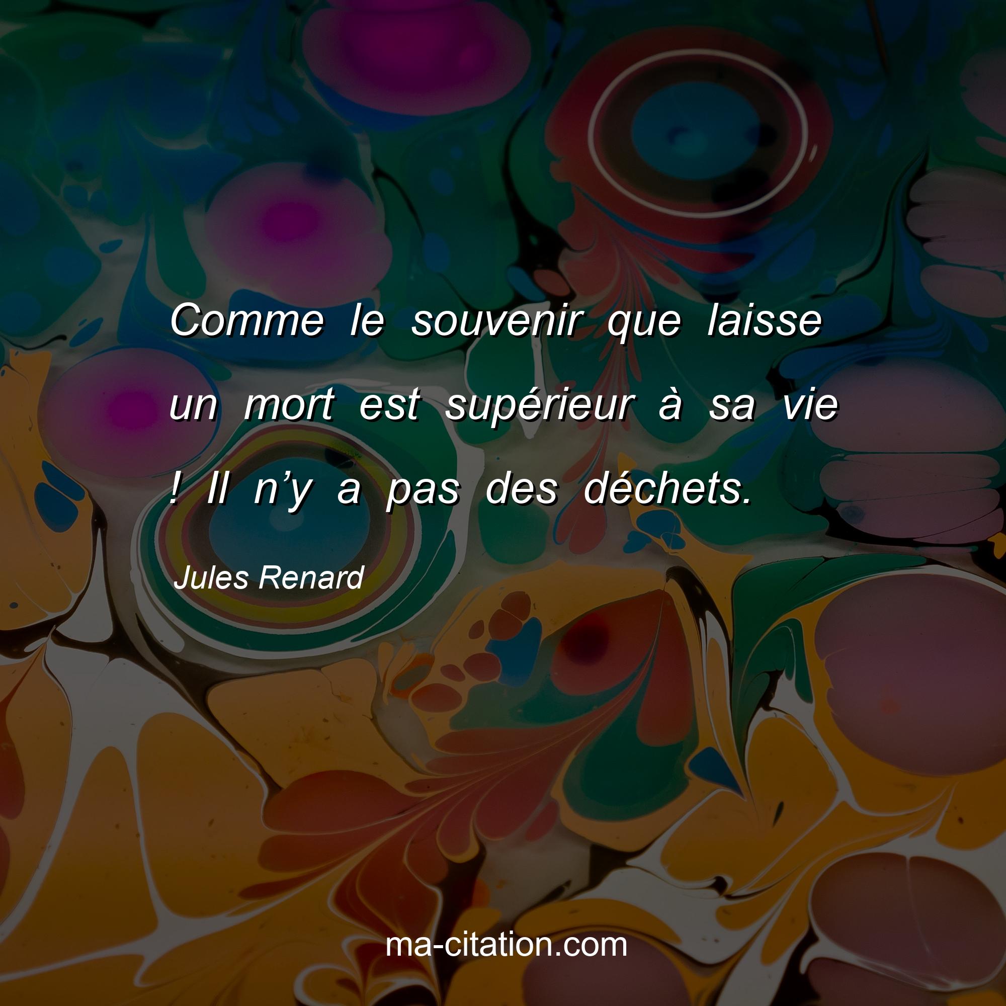 Citation sur la vie de Jules Renard :Comme le souvenir que laisse un mort est supérieur à sa vie ! Il n’y a pas des déchets.