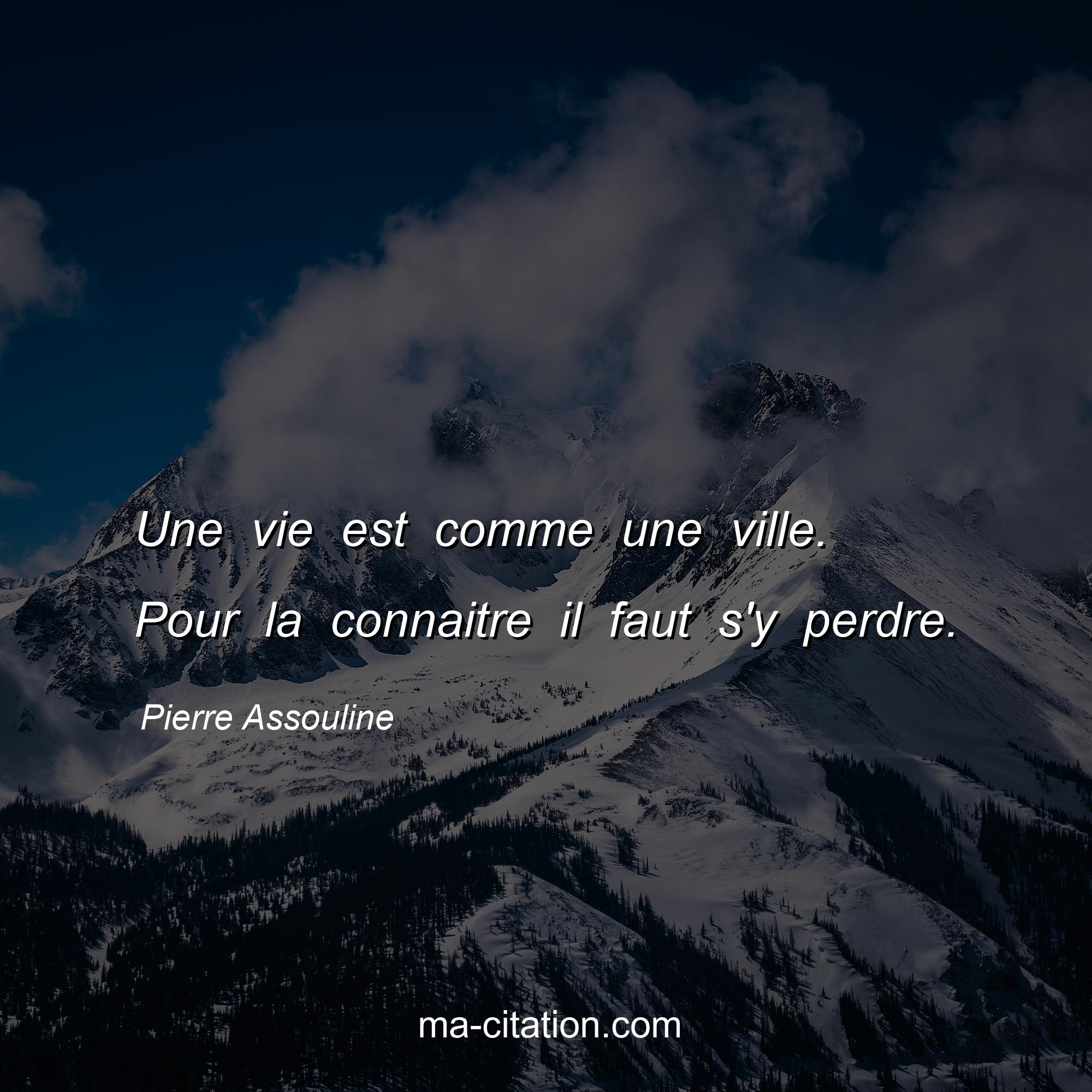 Pierre Assouline est l'auteur de la citation sur la vie "Une vie est comme une ville. Pour la connaitre il faut s'y perdre.".