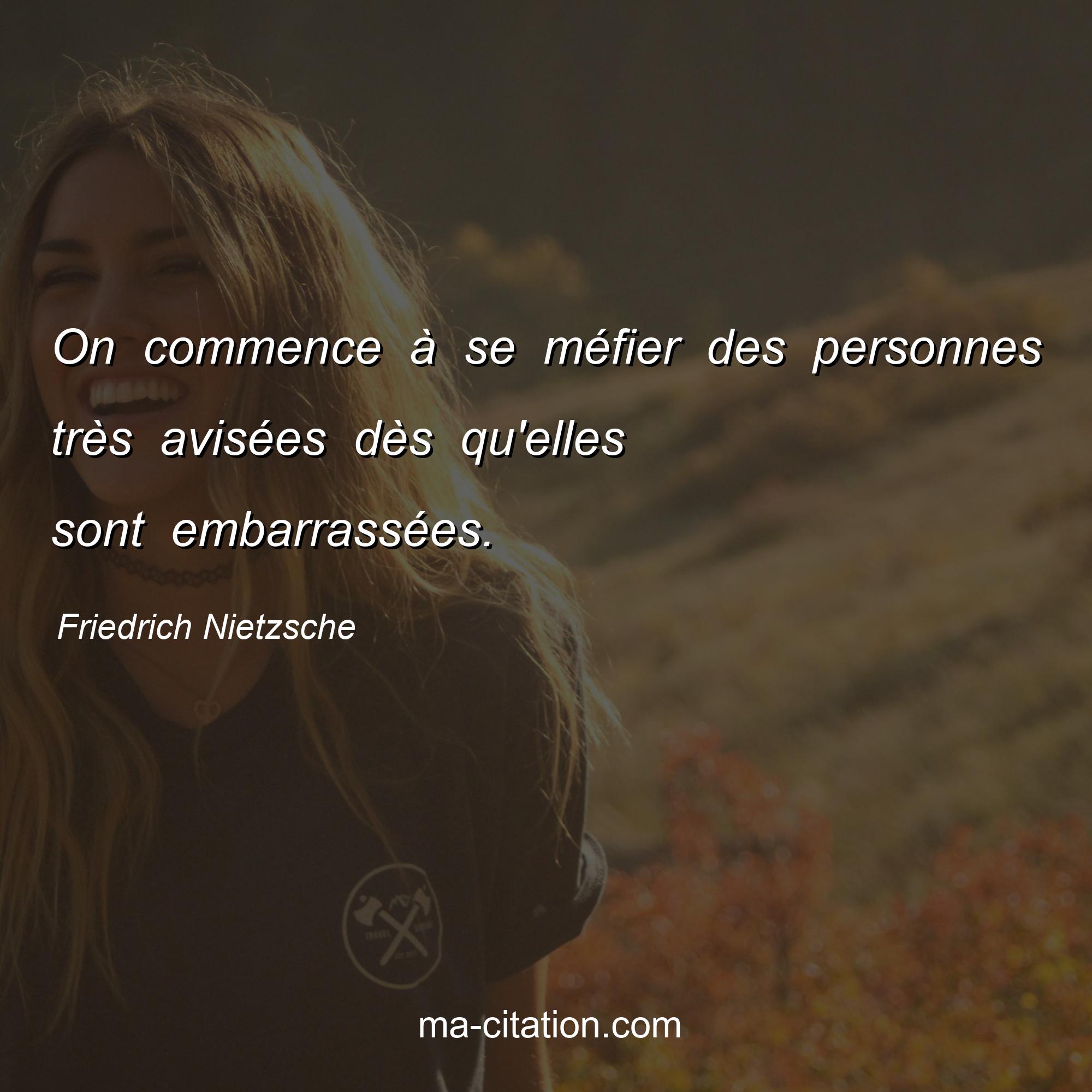 Citation sur la vie de Friedrich Nietzsche :On commence à se méfier des personnes très avisées dès qu'elles sont embarrassées.