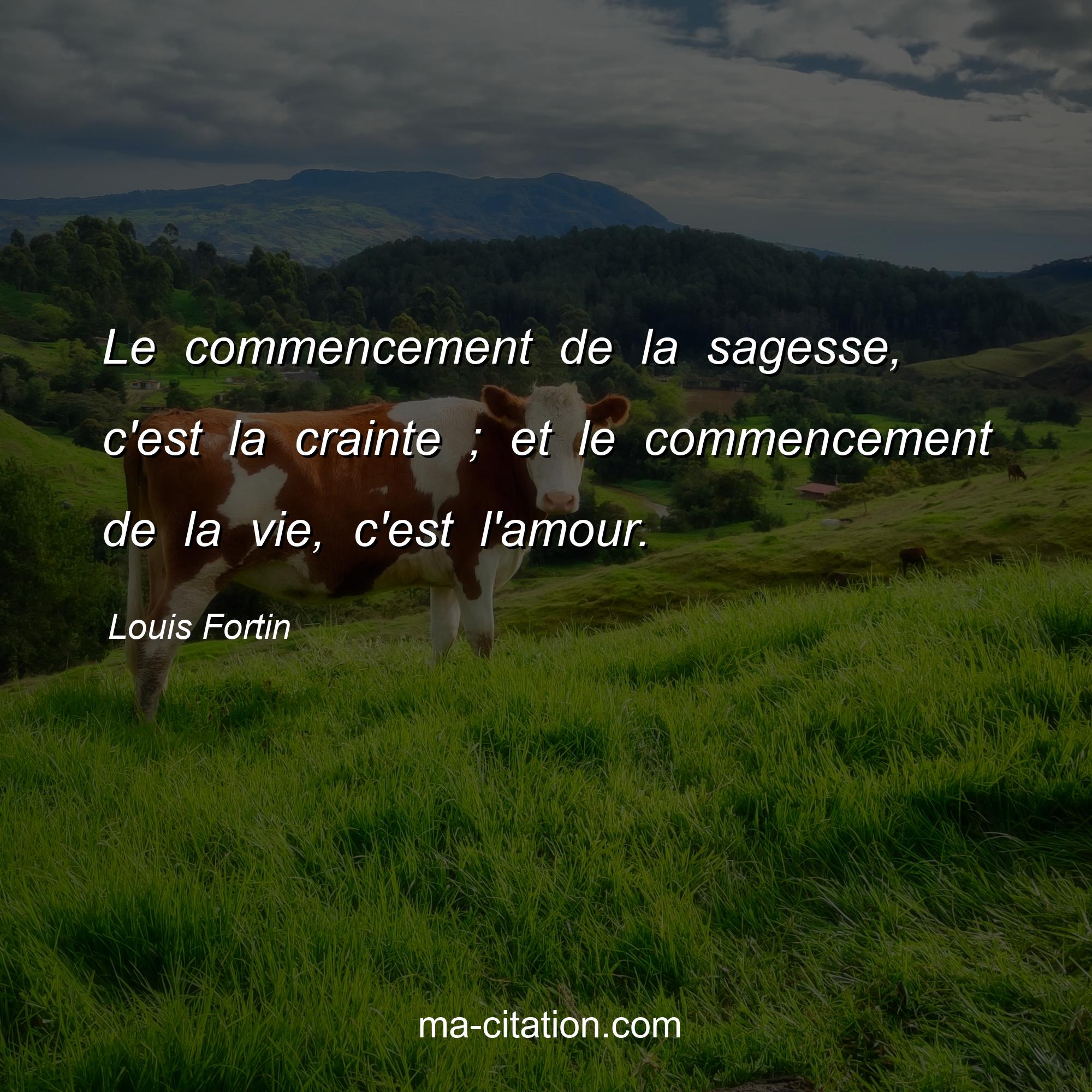 Louis Fortin est l'auteur de la citation sur la vie "Le commencement de la sagesse, c'est la crainte ; et le commencement de la vie, c'est l'amour.".