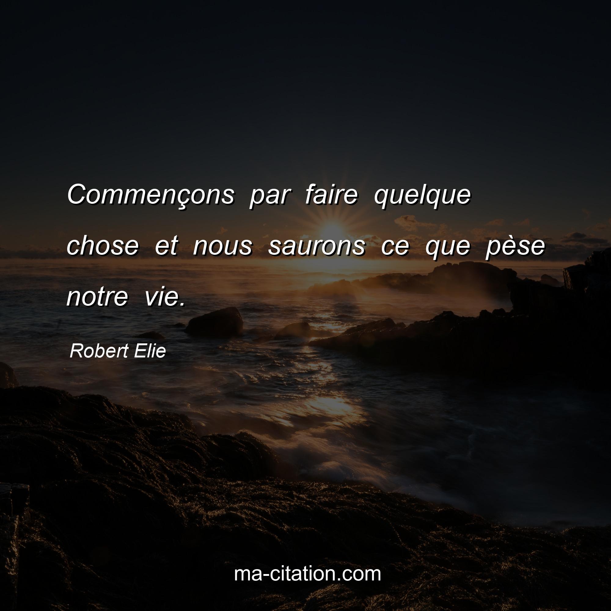 Robert Elie est l'auteur de la citation sur la vie "Commençons par faire quelque chose et nous saurons ce que pèse notre vie.".