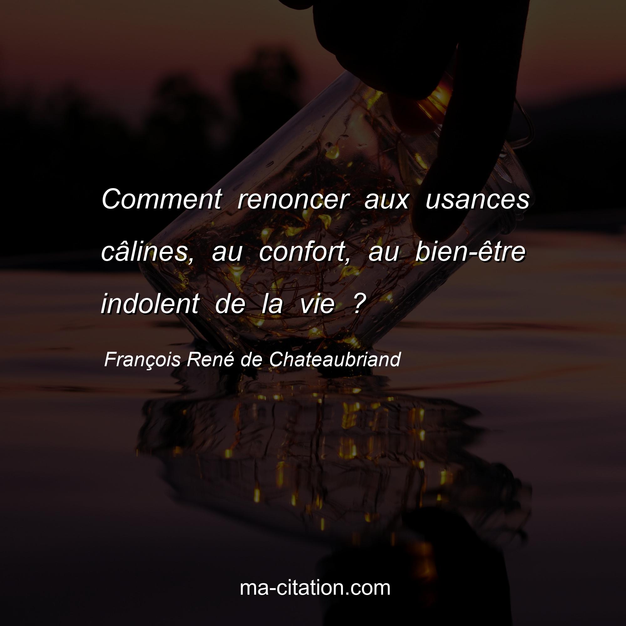 François René de Chateaubriand est l'auteur de la citation sur la vie "Comment renoncer aux usances câlines, au confort, au bien-être indolent de la vie ?".