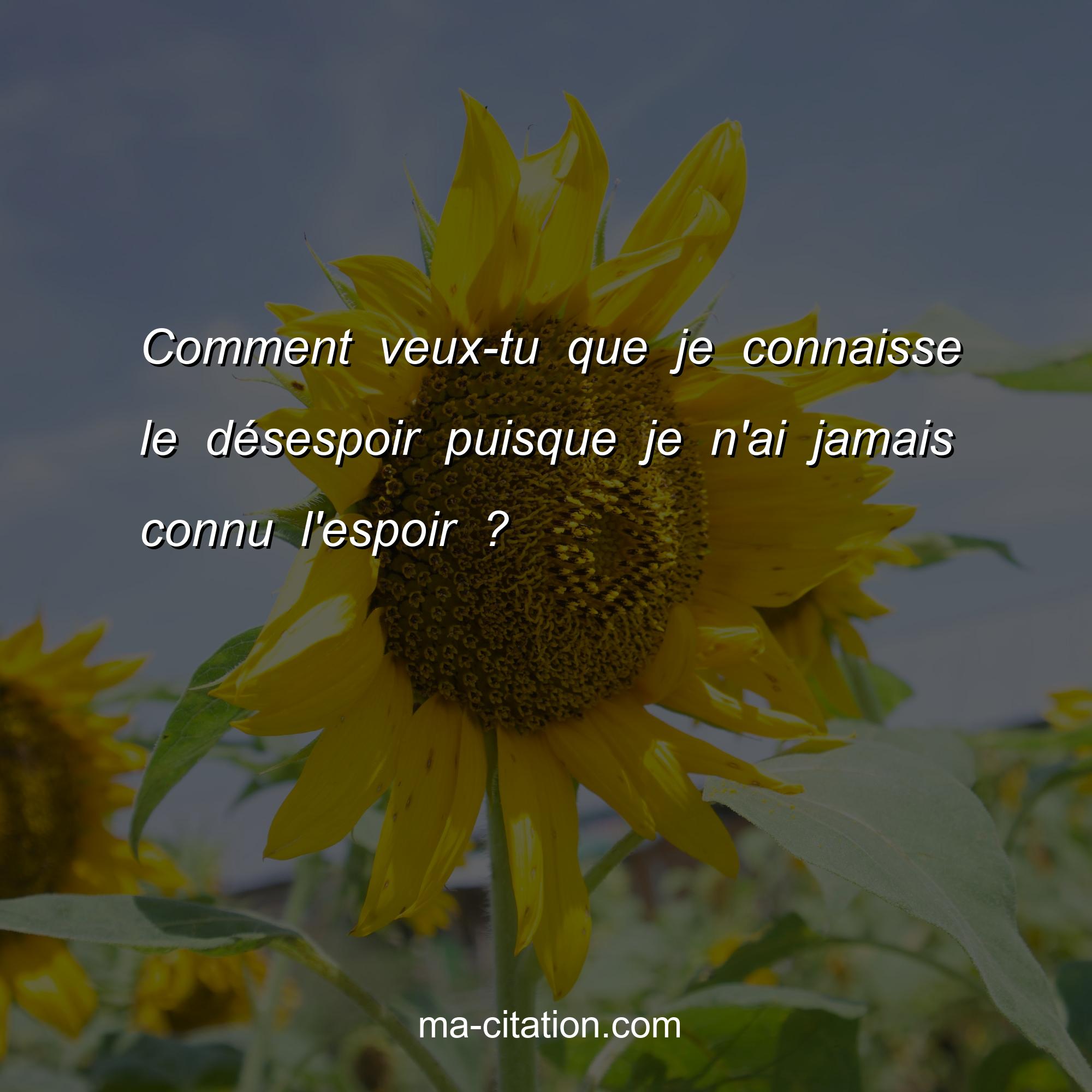 Citation sur la vie :Comment veux-tu que je connaisse le désespoir puisque je n'ai jamais connu l'espoir ?
