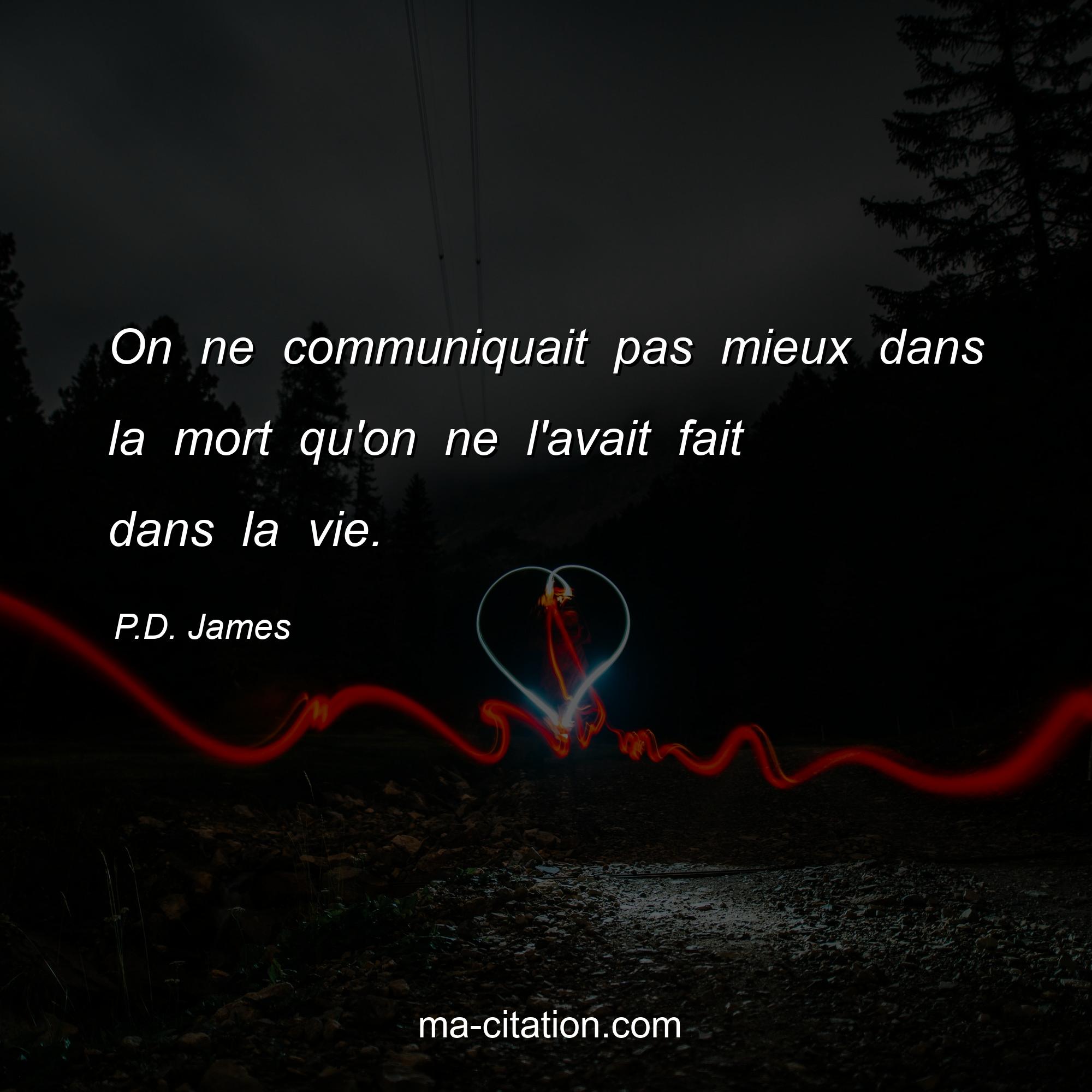 Citation sur la vie de P.D. James :On ne communiquait pas mieux dans la mort qu'on ne l'avait fait dans la vie.