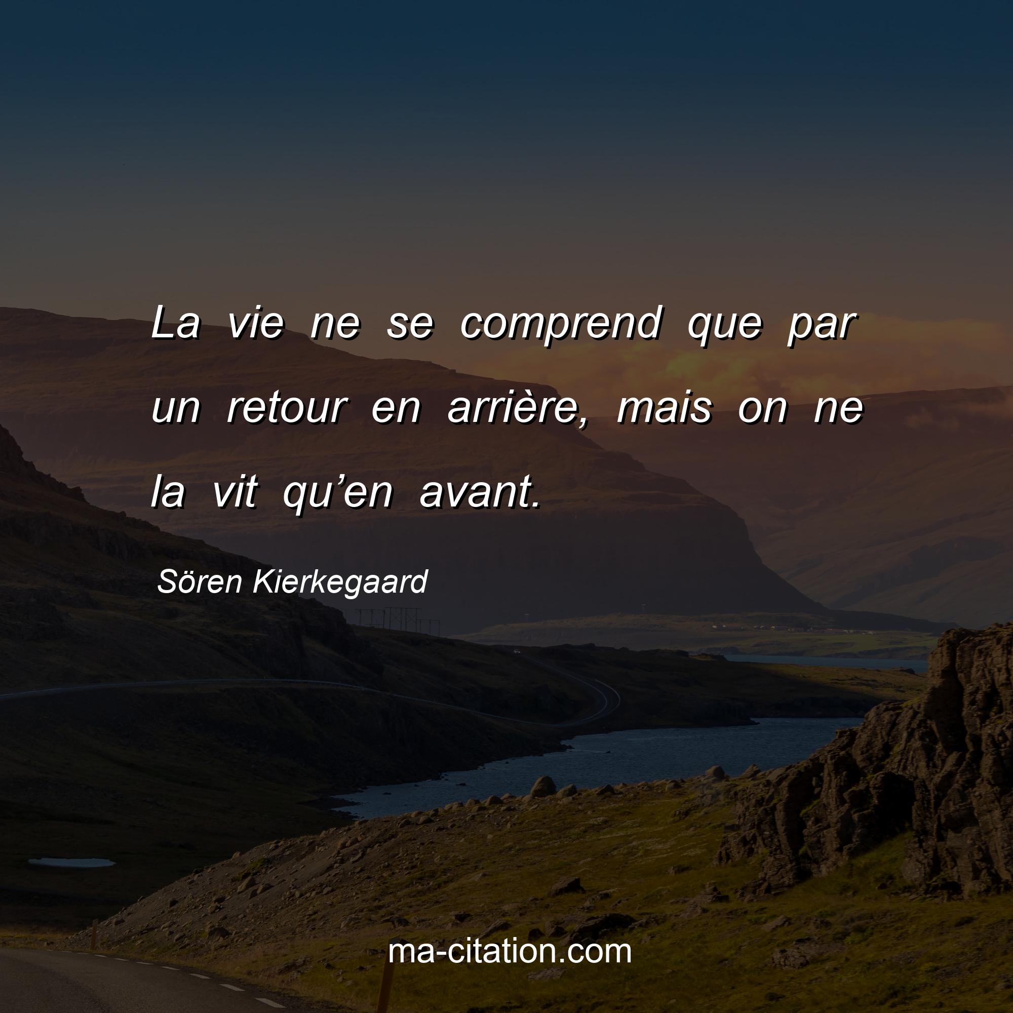 Citation sur la vie de Sören Kierkegaard :La vie ne se comprend que par un retour en arrière, mais on ne la vit qu’en avant.