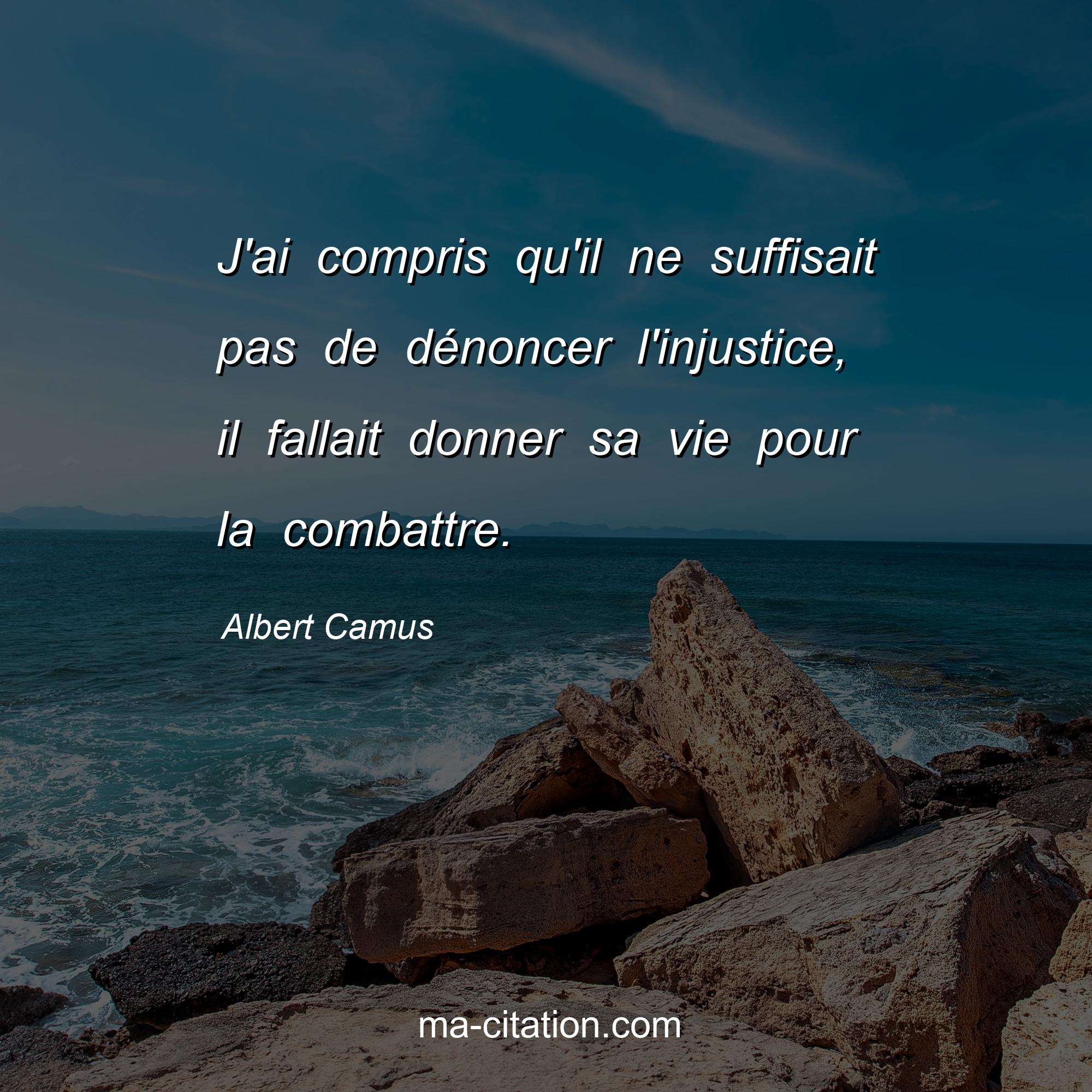 Citation sur la vie d'Albert Camus :J'ai compris qu'il ne suffisait pas de dénoncer l'injustice, il fallait donner sa vie pour la combattre.