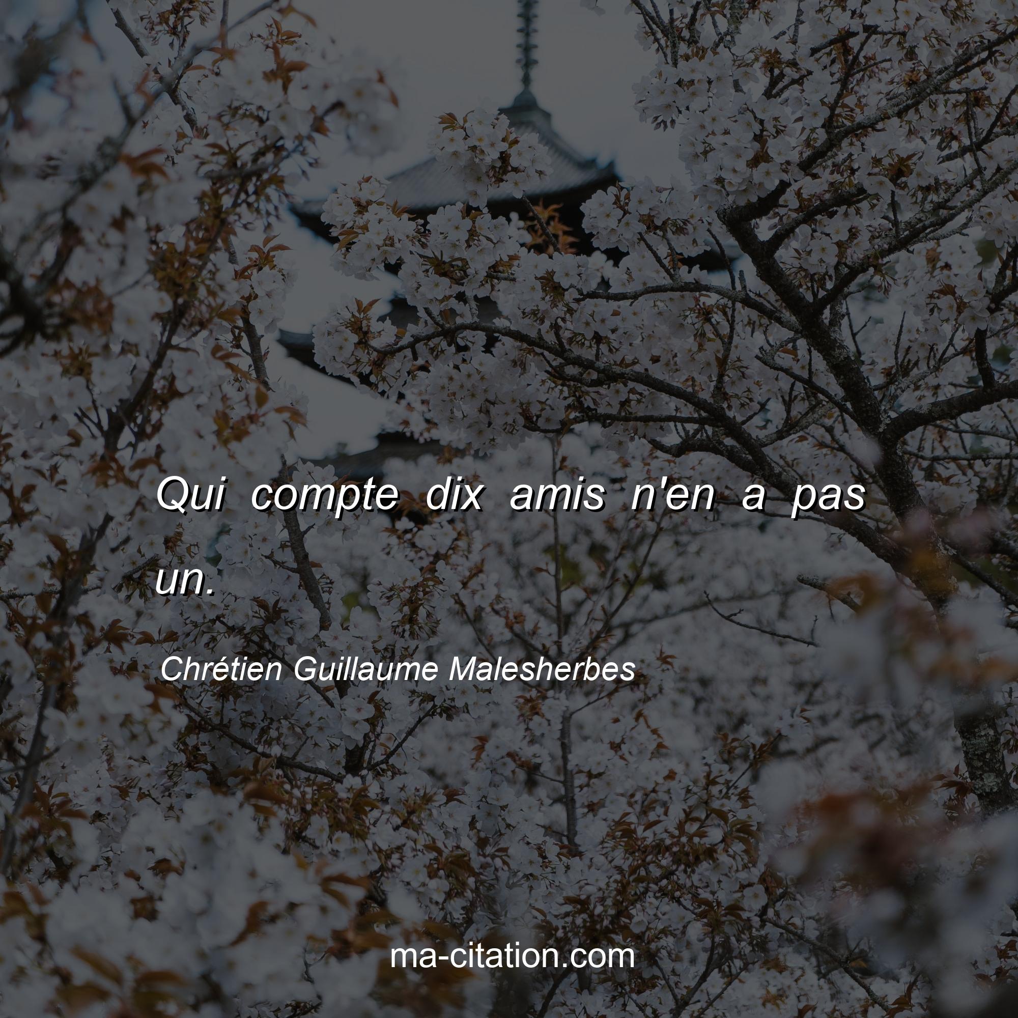 Citation sur la vie de Chrétien Guillaume Malesherbes :Qui compte dix amis n'en a pas un.