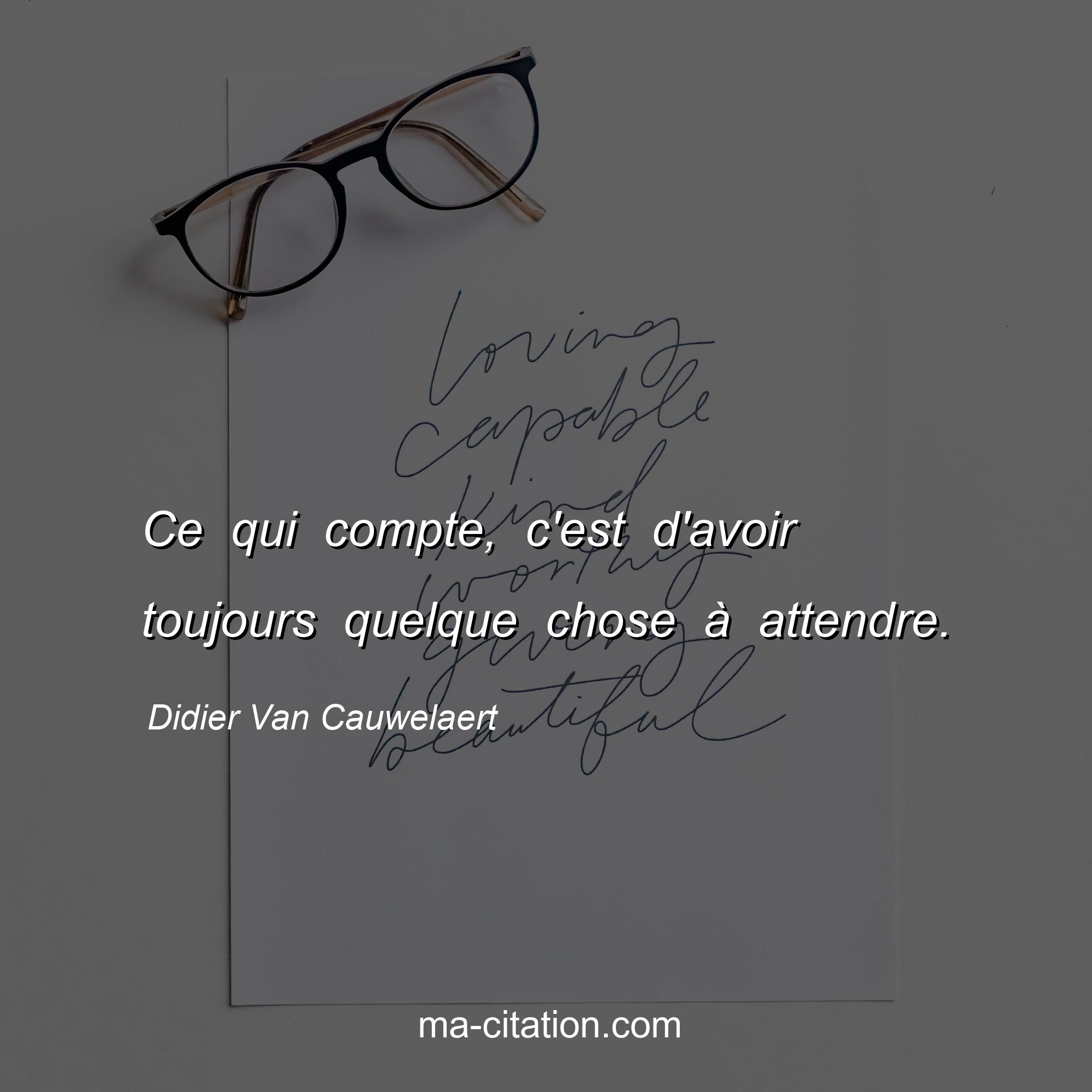 Citation sur la vie de Didier Van Cauwelaert :Ce qui compte, c'est d'avoir toujours quelque chose à attendre.