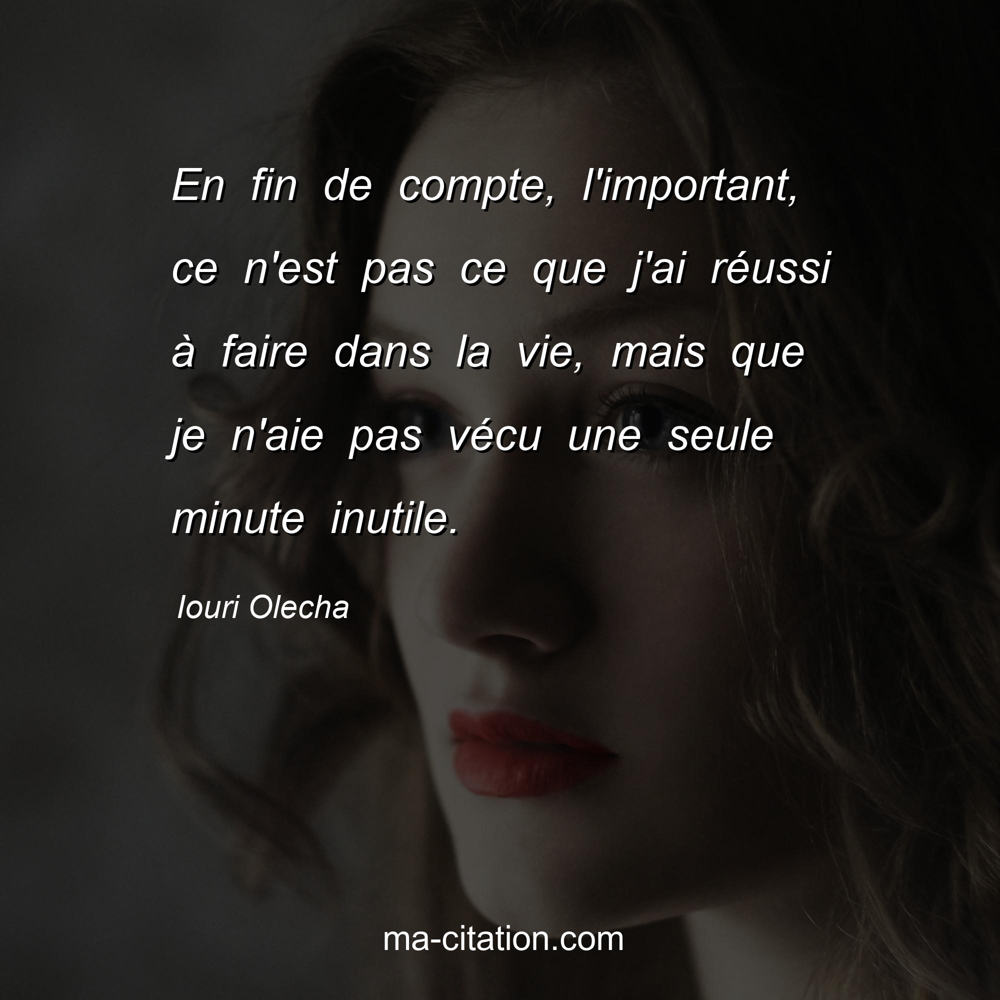 Citation sur la vie d'Iouri Olecha :En fin de compte, l'important, ce n'est pas ce que j'ai réussi à faire dans la vie, mais que je n'aie pas vécu une seule minute inutile.