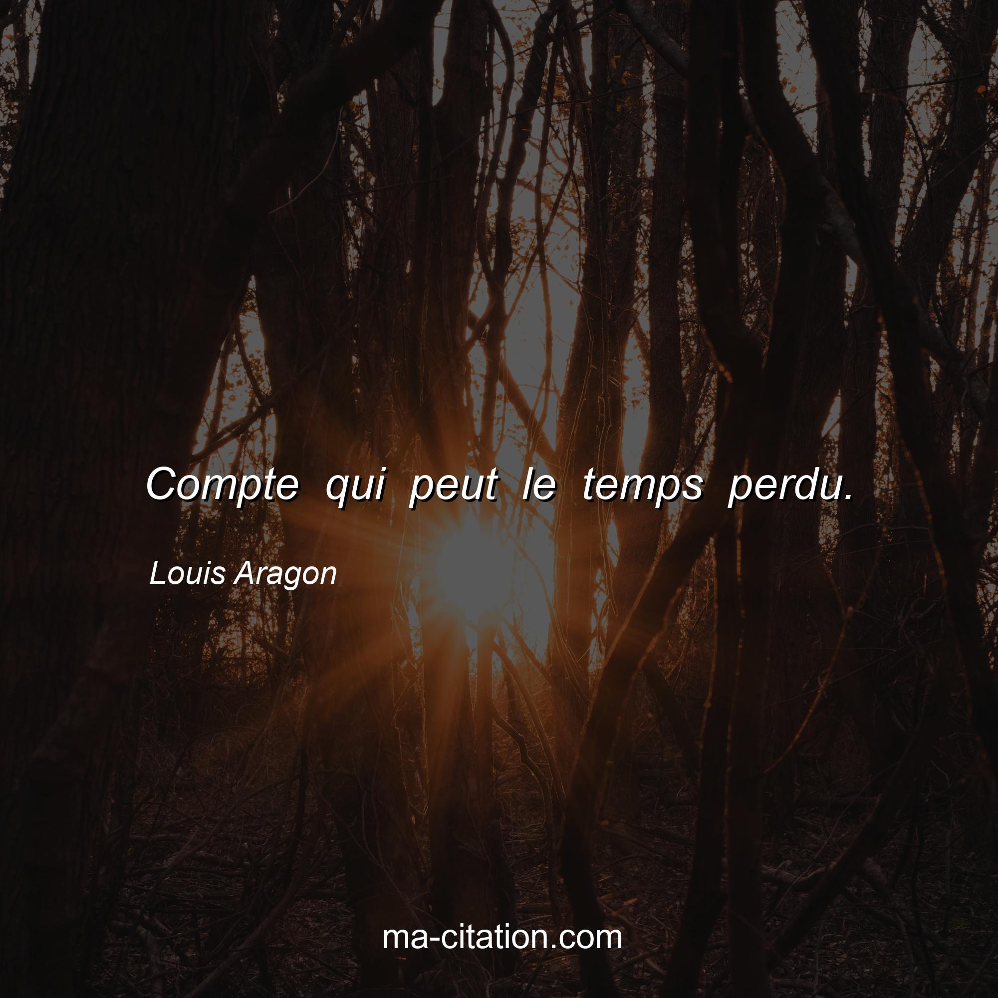 Louis Aragon est l'auteur de la citation sur la vie "Compte qui peut le temps perdu.".