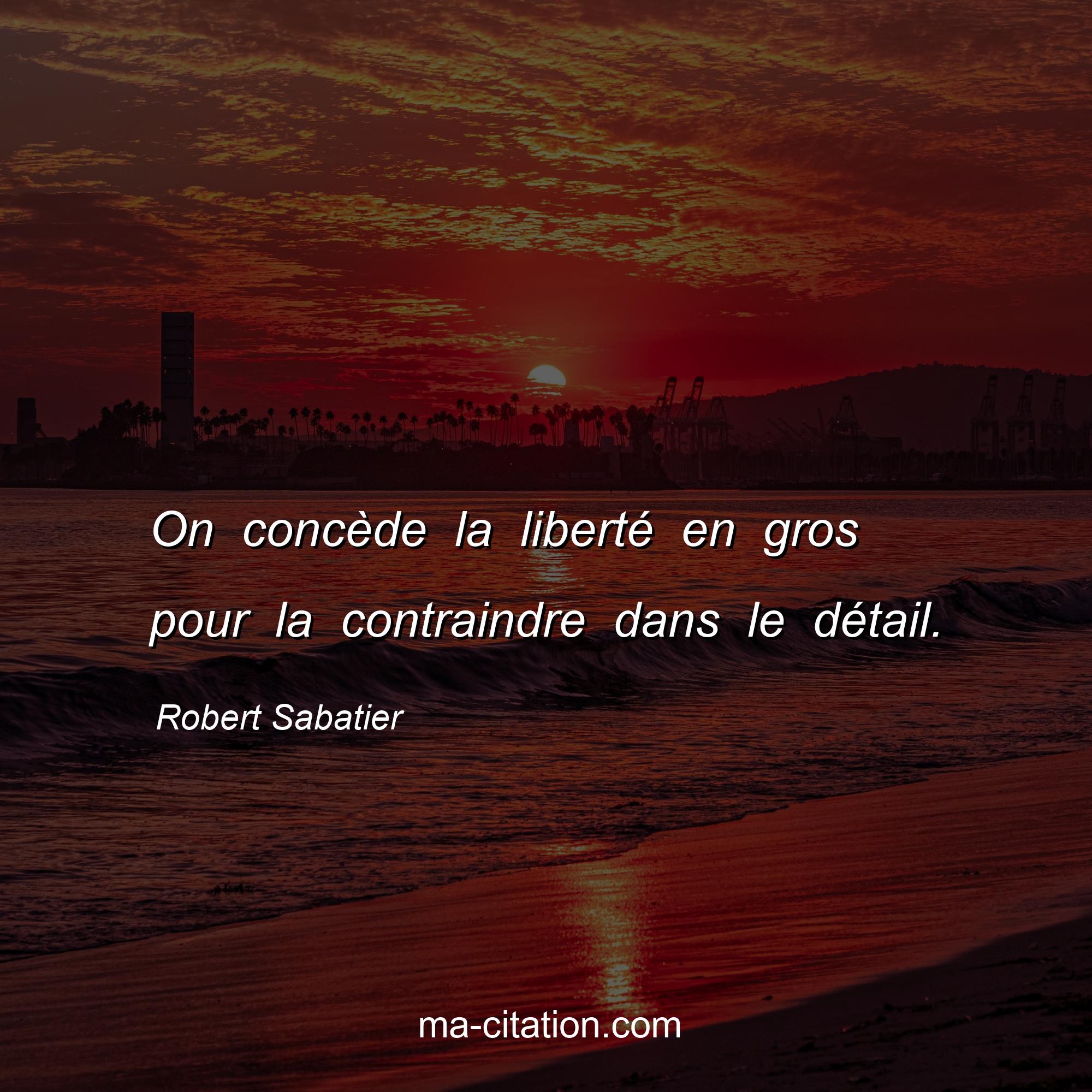 Citation sur la vie de Robert Sabatier :On concède la liberté en gros pour la contraindre dans le détail.