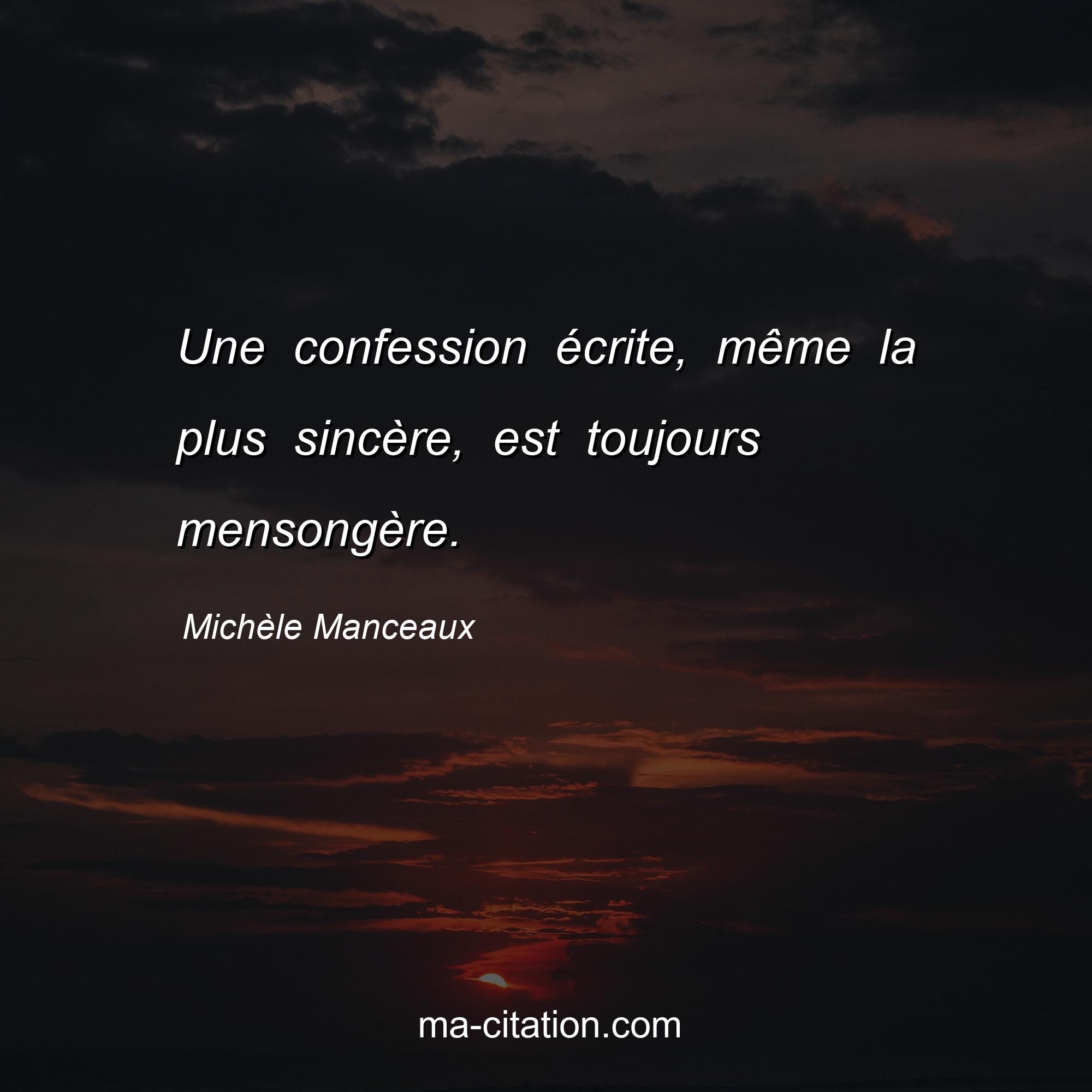 Citation sur la vie de Michèle Manceaux :Une confession écrite, même la plus sincère, est toujours mensongère.