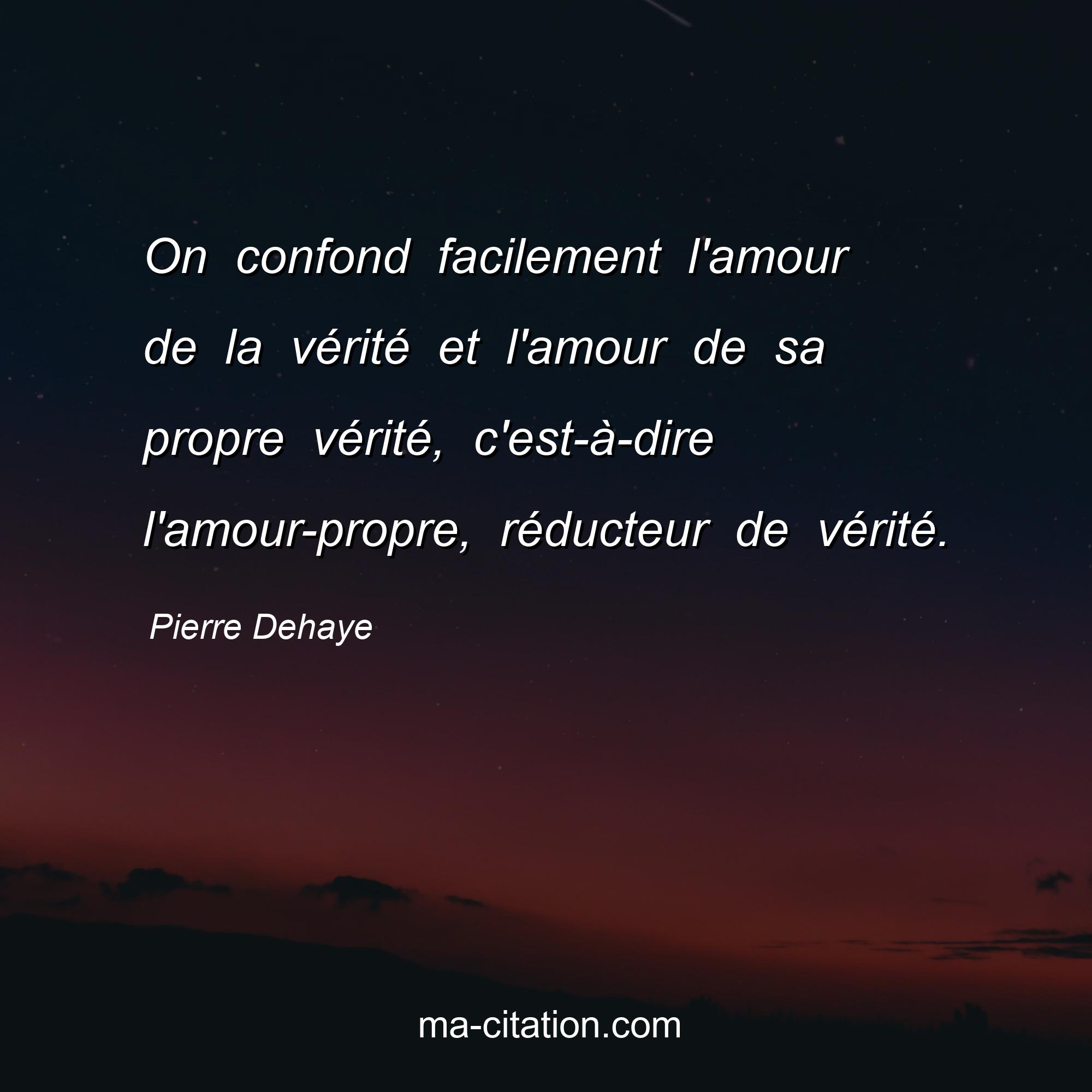 Citation sur la vie de Pierre Dehaye :On confond facilement l'amour de la vérité et l'amour de sa propre vérité, c'est-à -dire l'amour-propre, réducteur de vérité.
