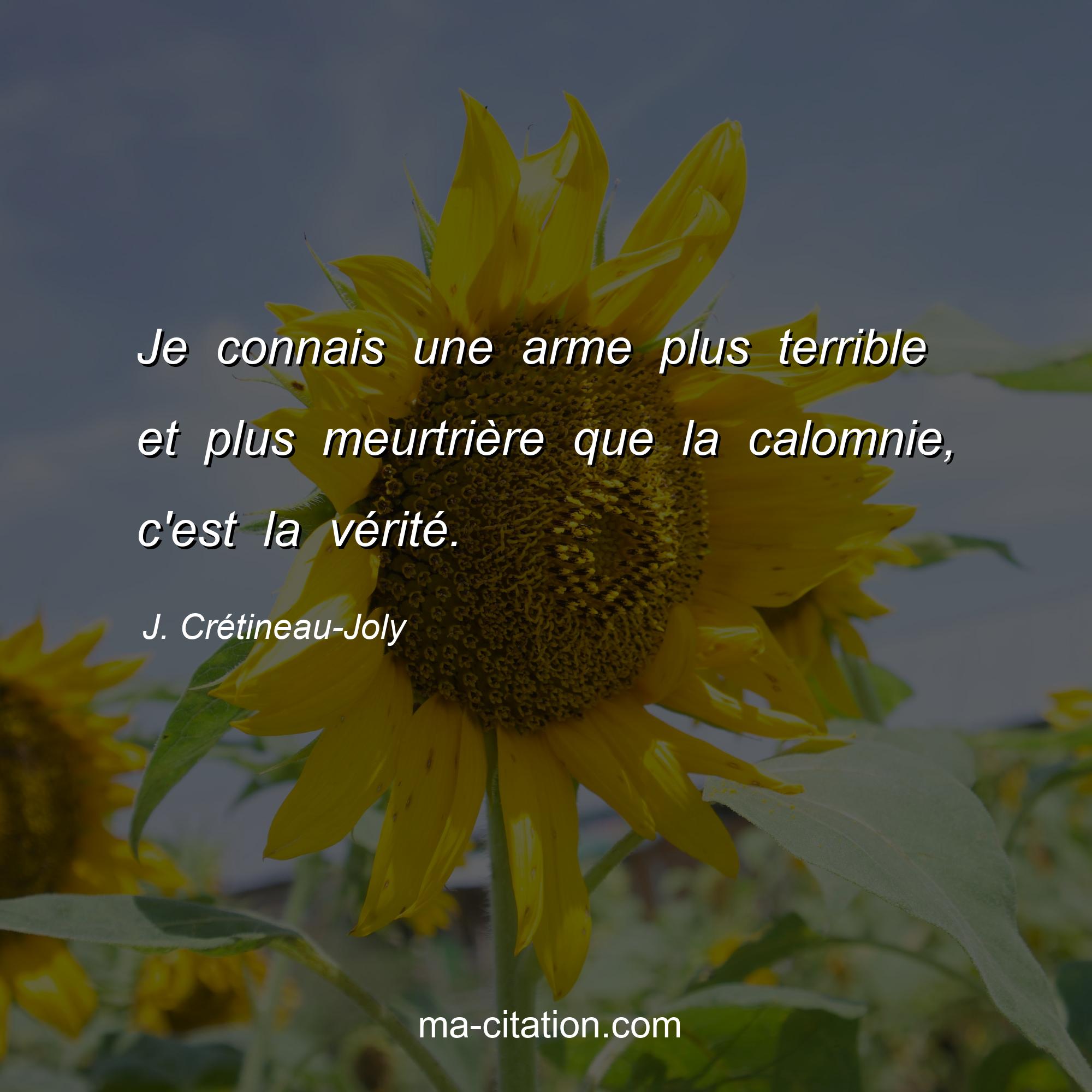 Citation sur la vie de J. Crétineau-Joly :Je connais une arme plus terrible et plus meurtrière que la calomnie, c'est la vérité.