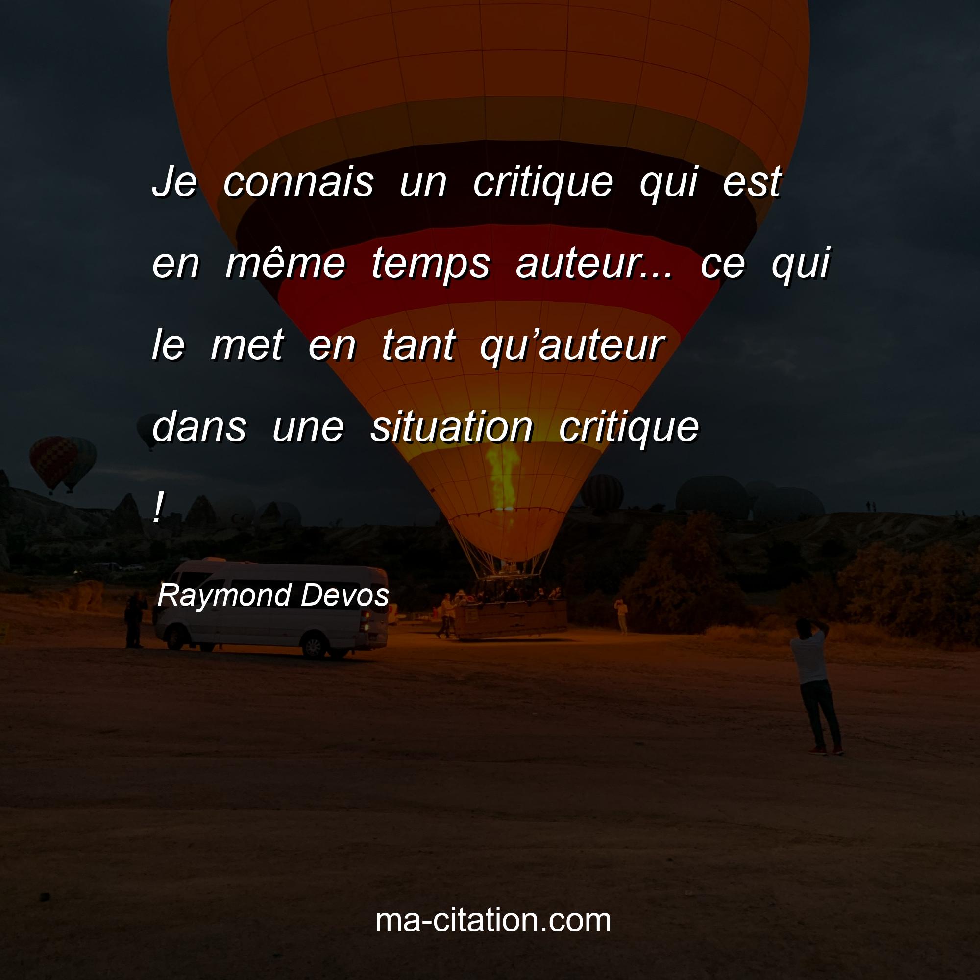 Citation sur la vie de Raymond Devos :Je connais un critique qui est en même temps auteur... ce qui le met en tant qu’auteur dans une situation critique !
