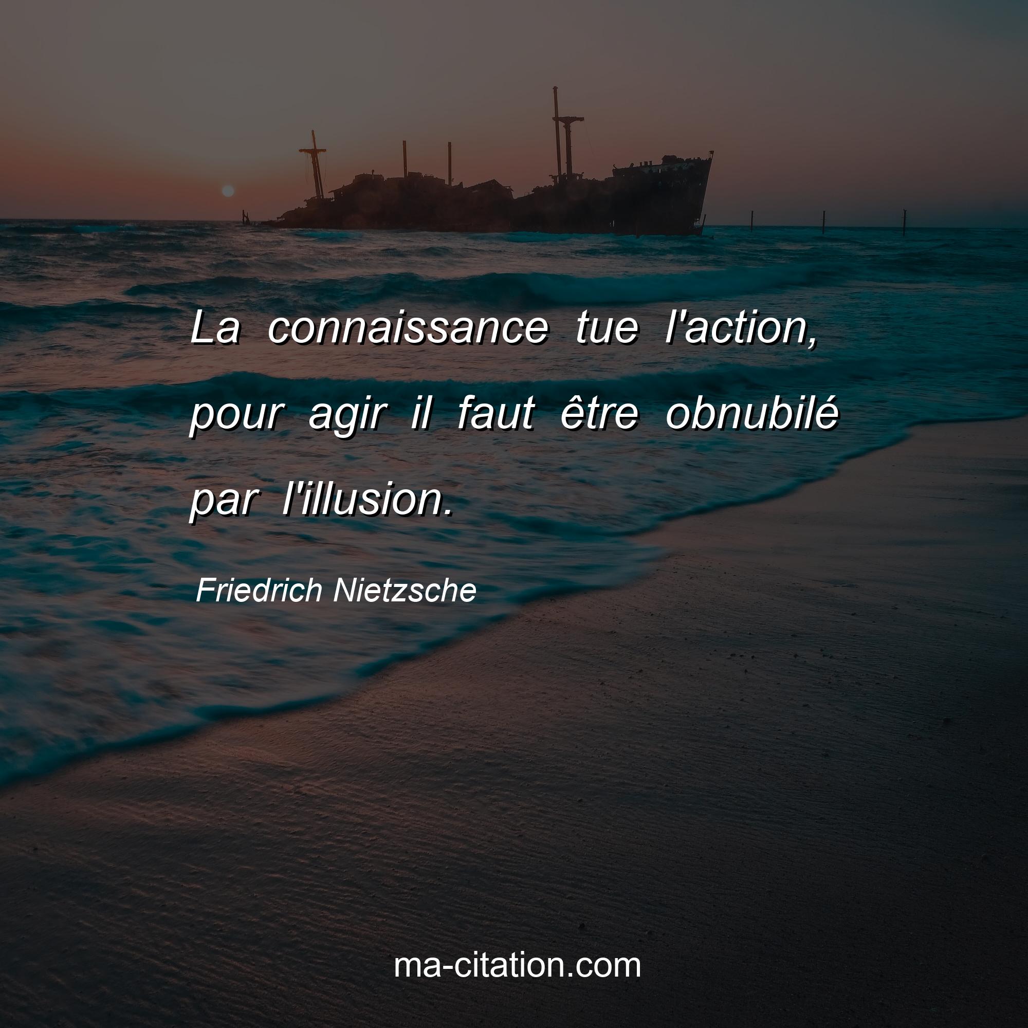 Citation sur la vie de Friedrich Nietzsche :La connaissance tue l'action, pour agir il faut être obnubilé par l'illusion.