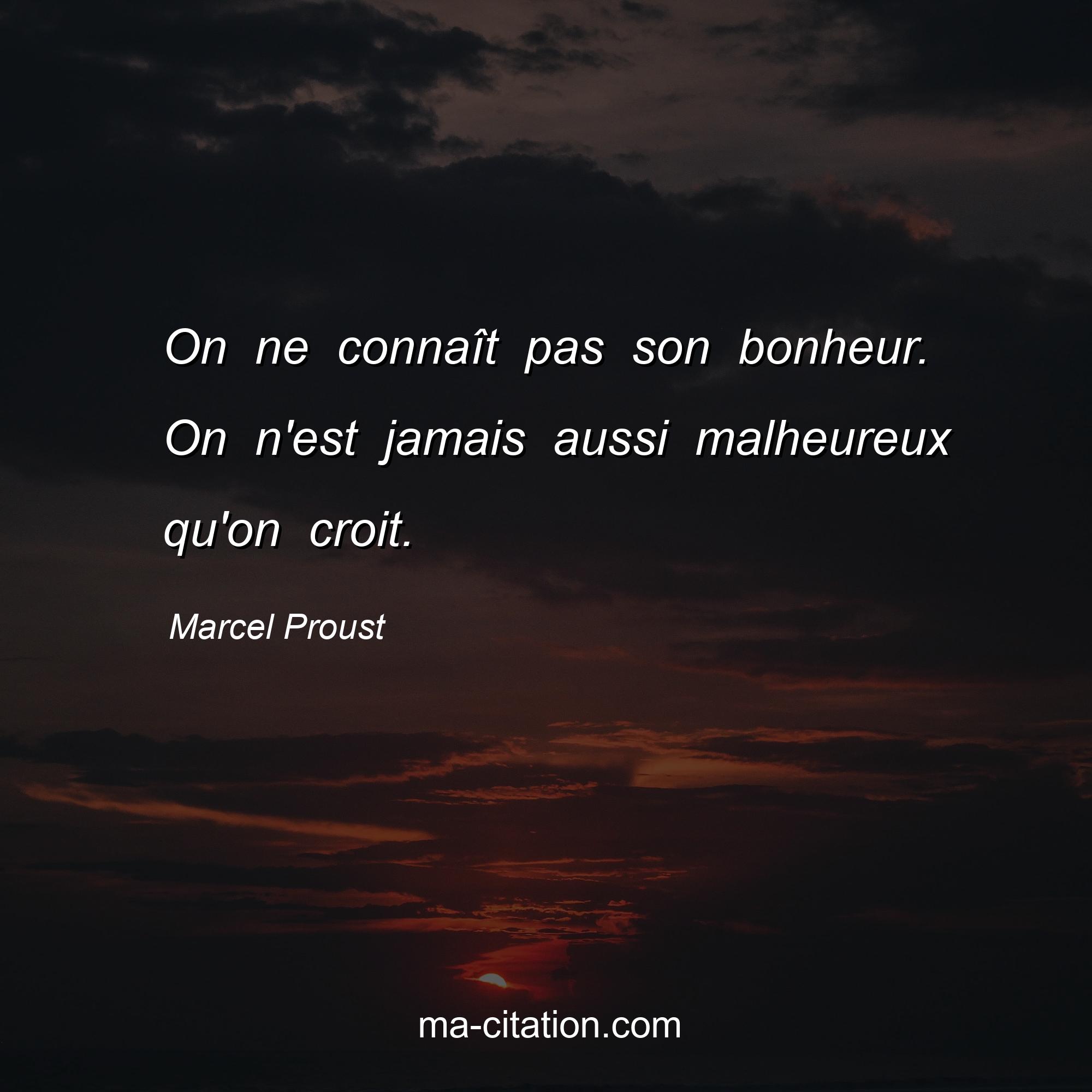 Citation sur la vie de Marcel Proust :On ne connaît pas son bonheur. On n'est jamais aussi malheureux qu'on croit.
