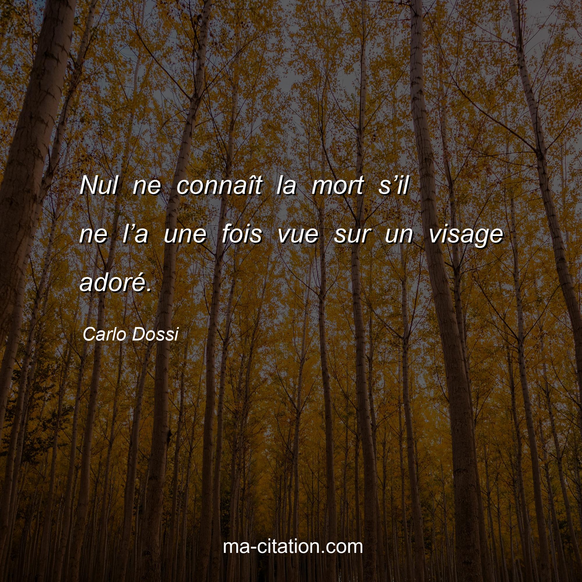 Citation sur la vie de Carlo Dossi :Nul ne connaît la mort s’il ne l’a une fois vue sur un visage adoré.